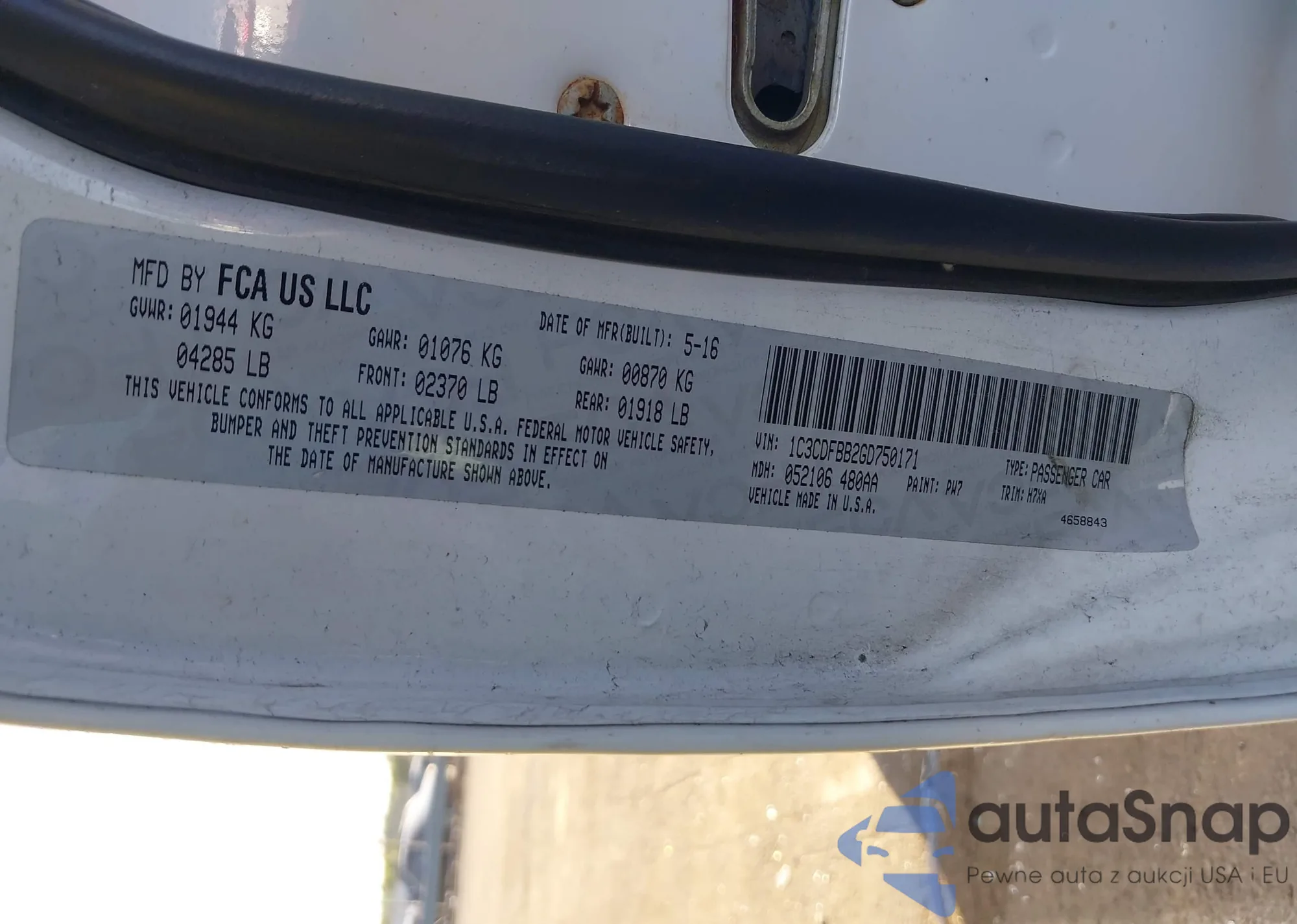LOT: 42531765 VIN: 1C3CDFBB2GD750171