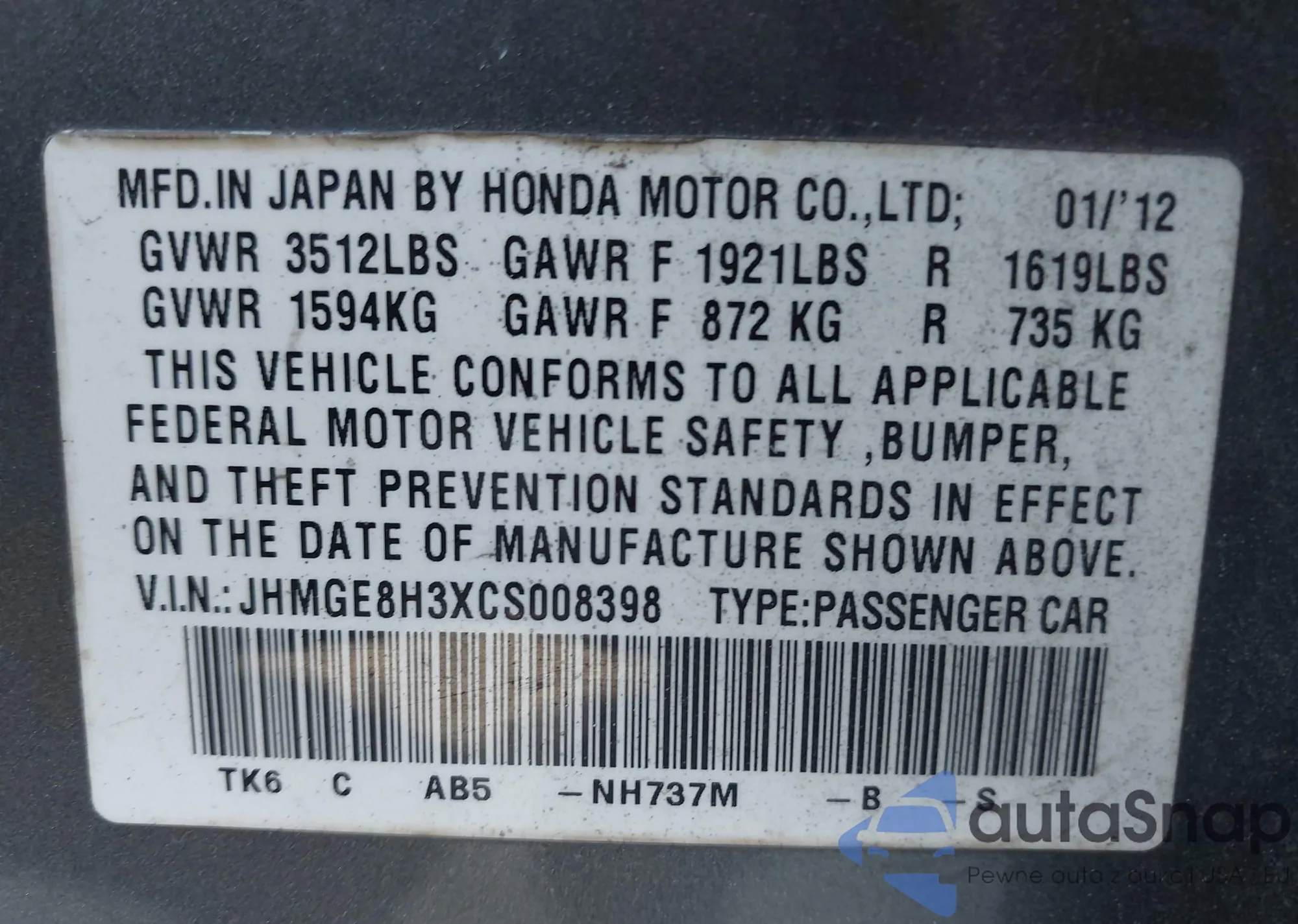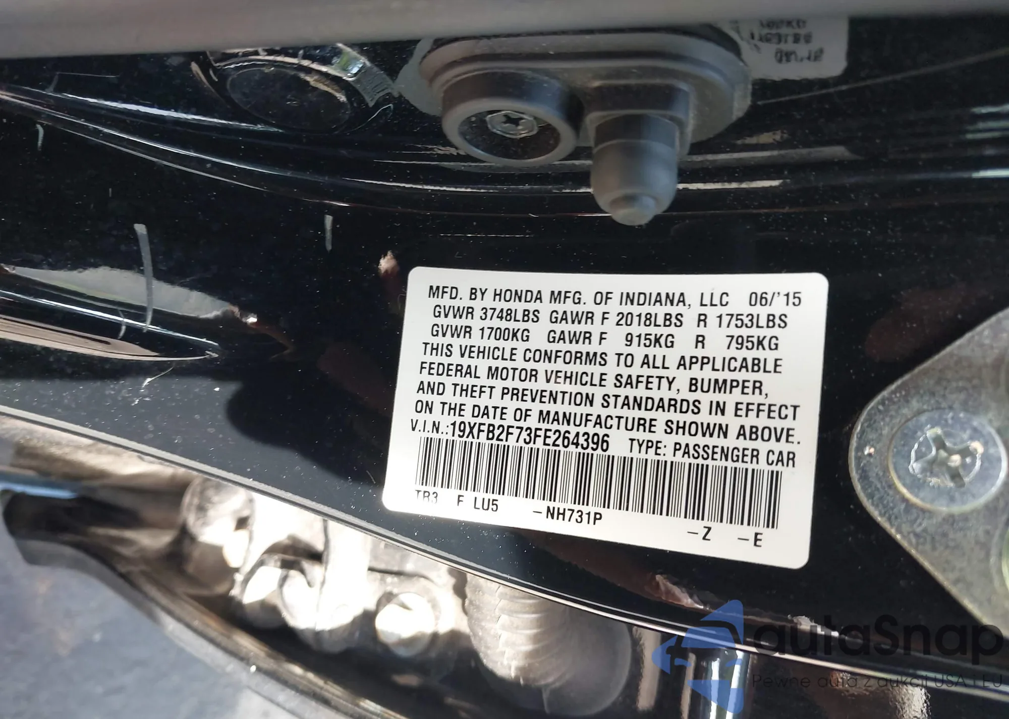 LOT: 42645012 VIN: 19XFB2F73FE264396