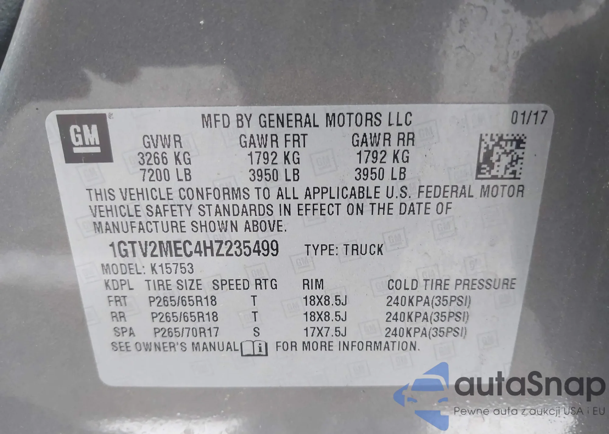 • VIN 1GTV2MEC4HZ235499