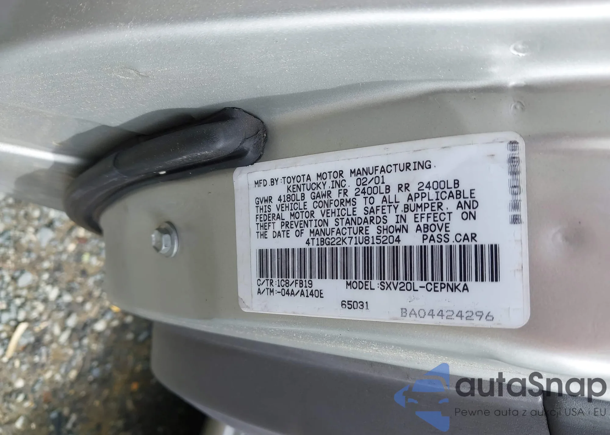 LOT: 42662958 VIN: 4T1BG22K71U815204
