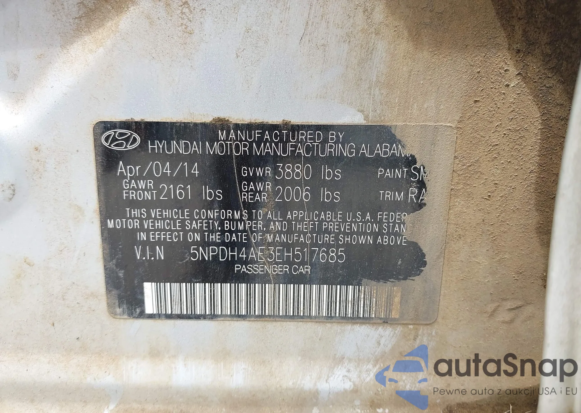 • VIN 5NPDH4AE3EH517685