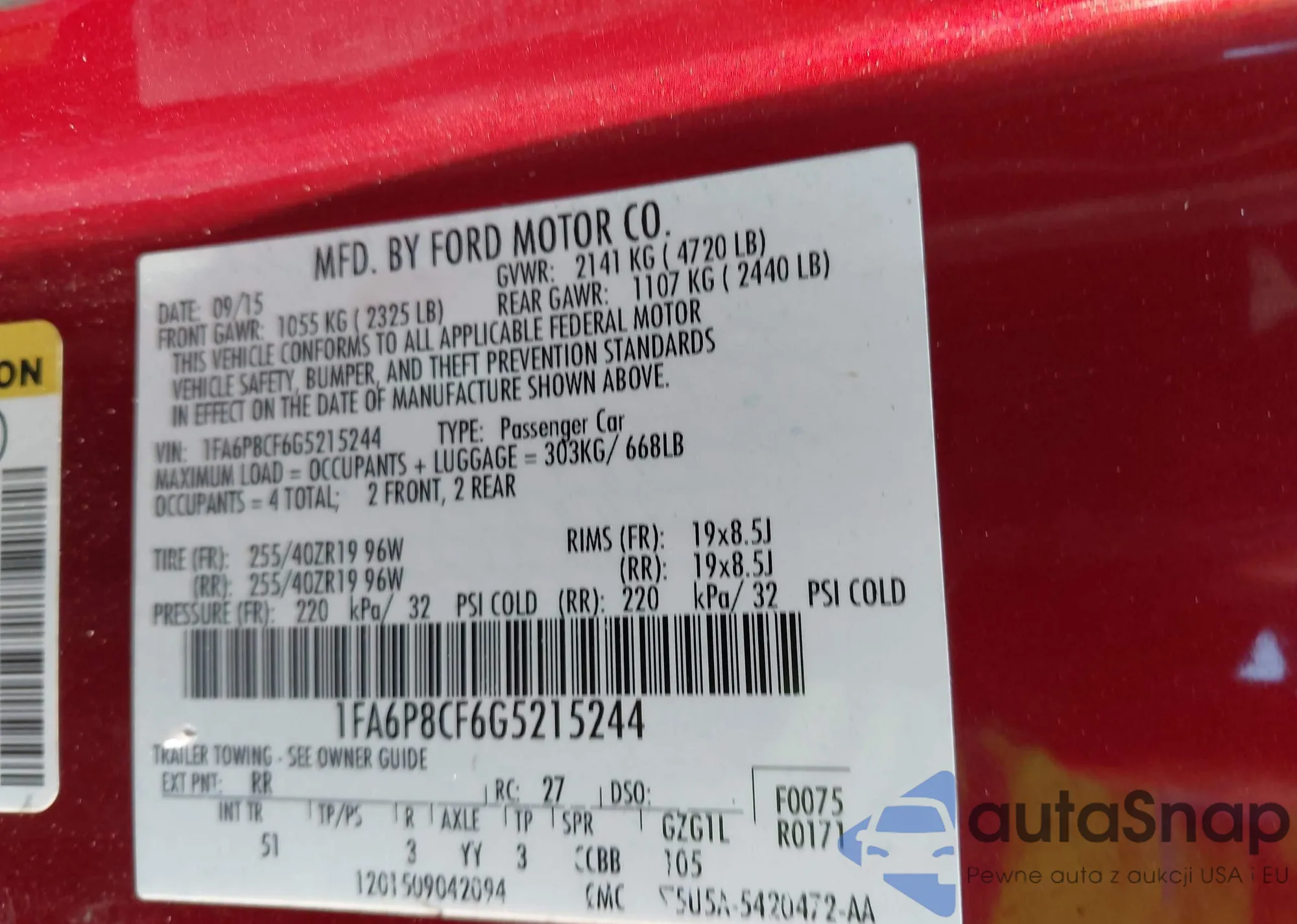 • VIN 1FA6P8CF6G5215244