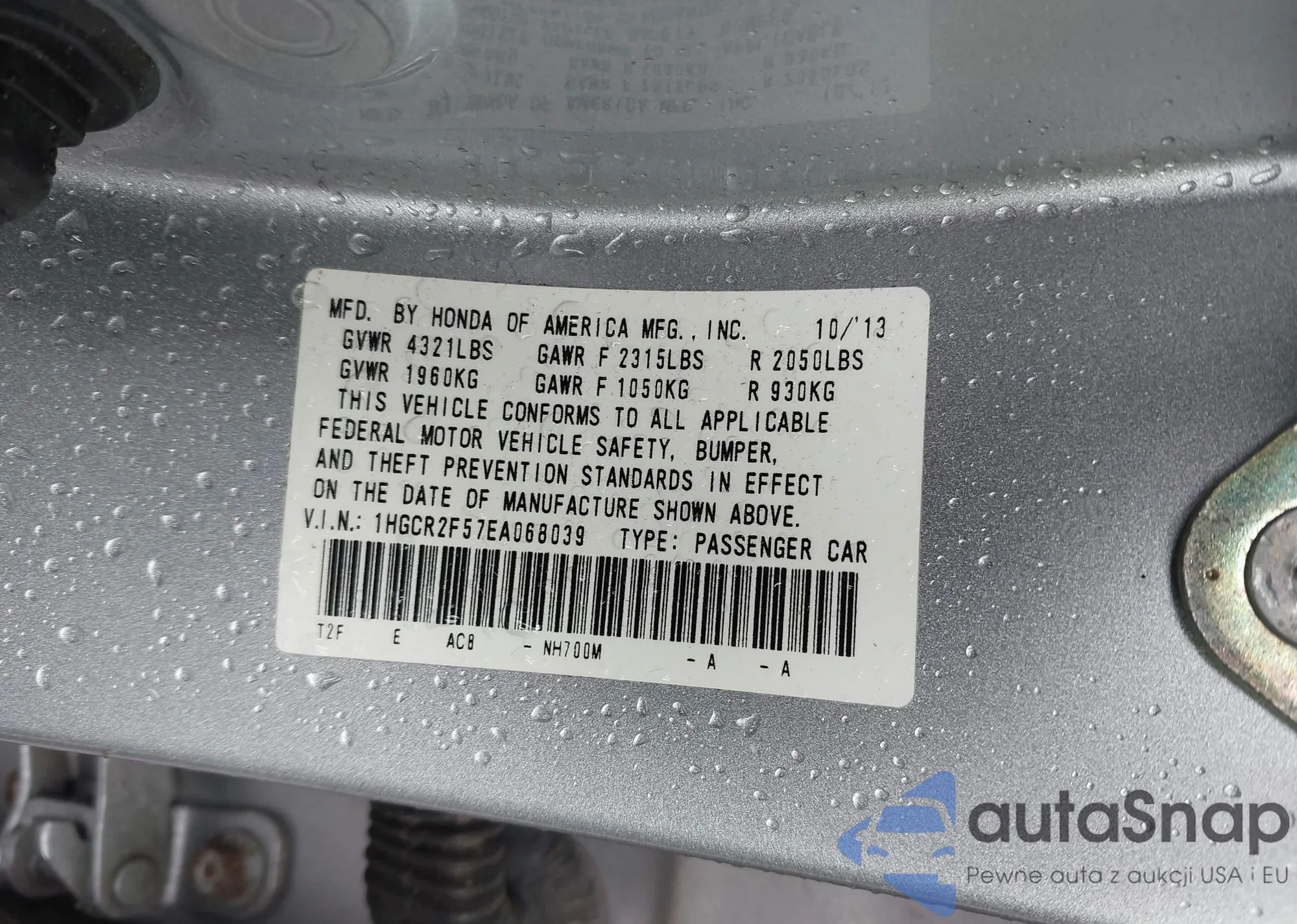 • VIN 1HGCR2F57EA068039