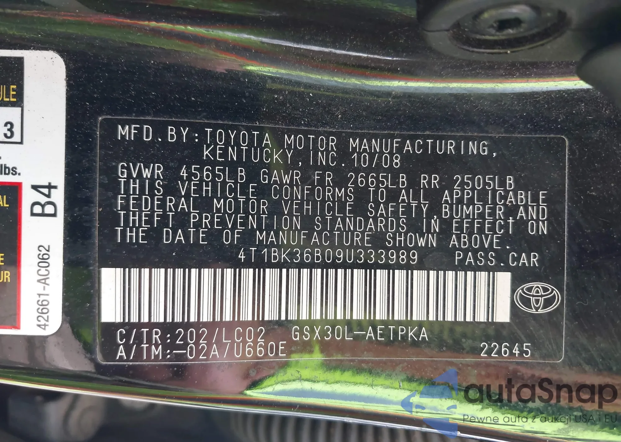 • VIN 4T1BK36B09U333989