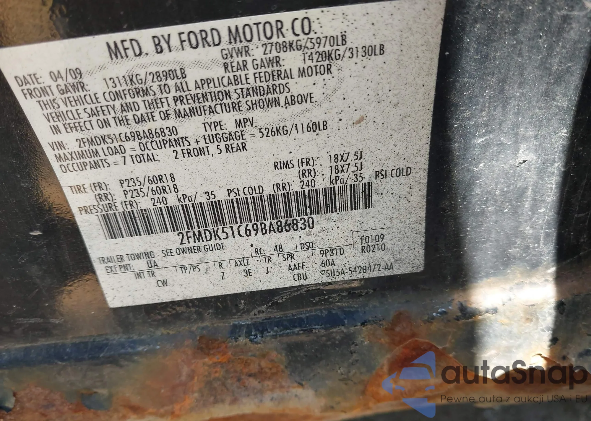 LOT: 42754993 VIN: 2FMDK51C69BA86830