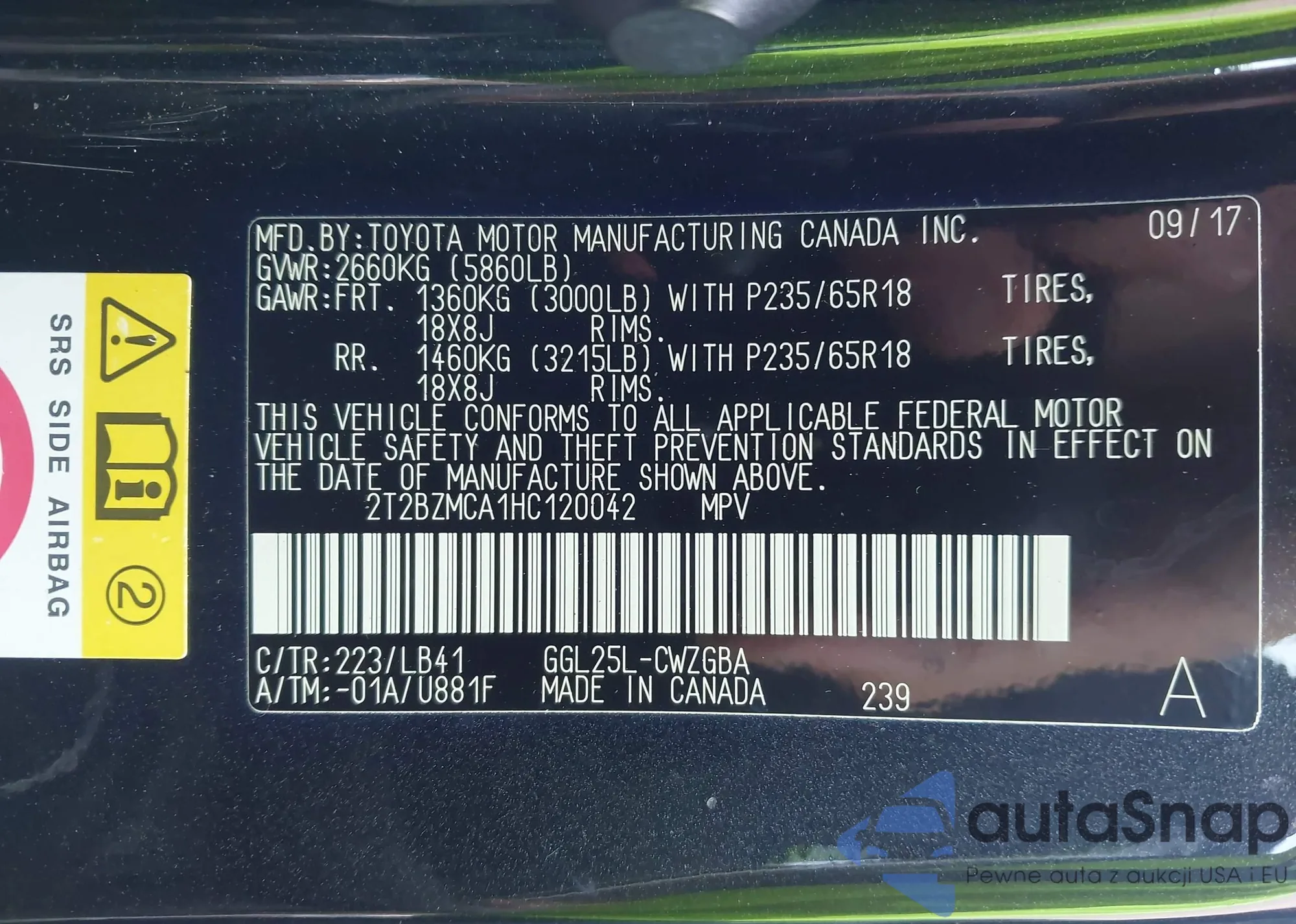LOT: 42782868 VIN: 2T2BZMCA1HC120042