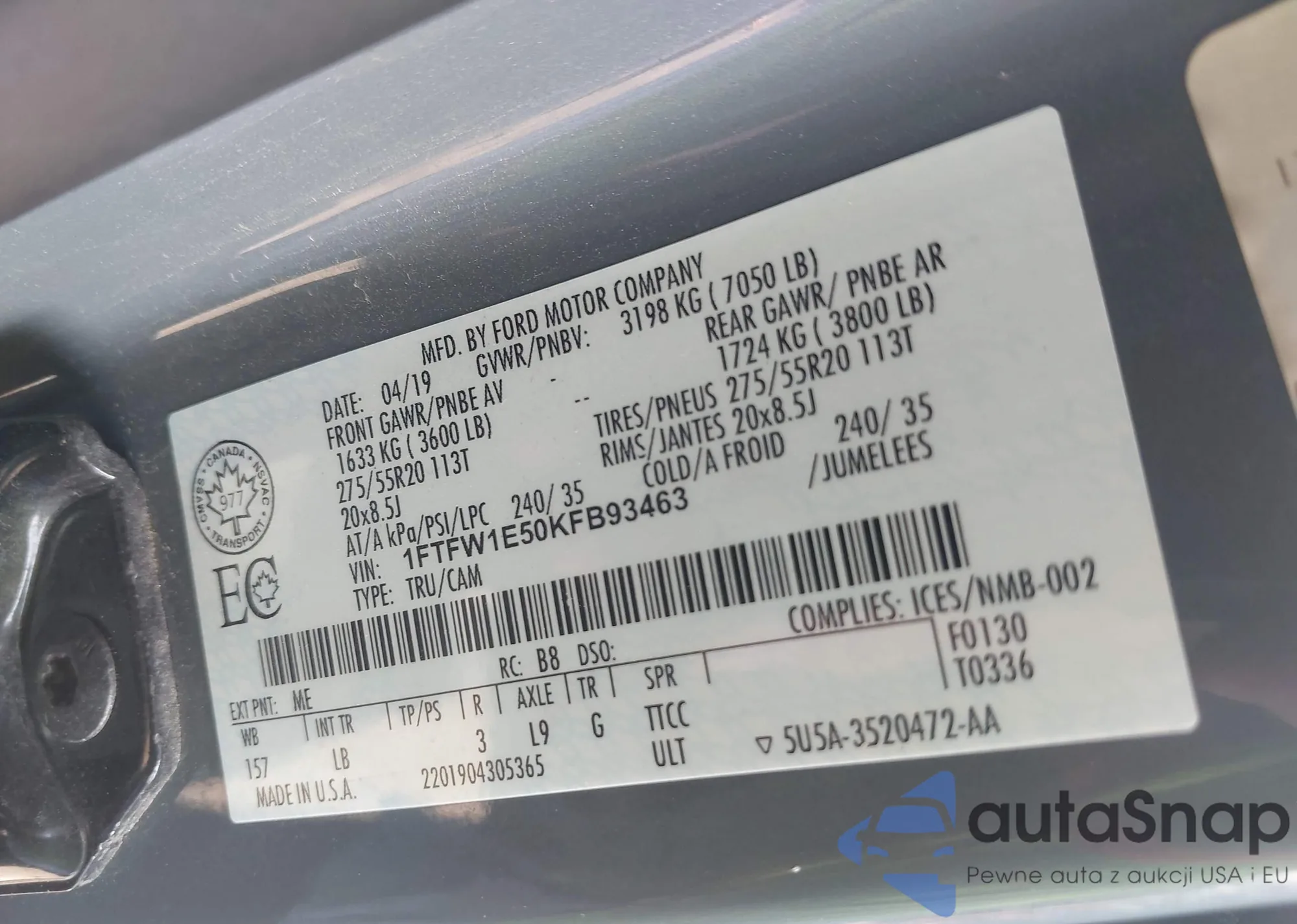 • VIN 1FTEW1E44KFB16372