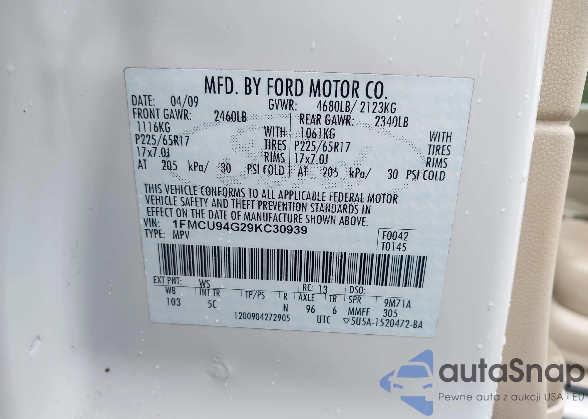 • VIN 2FMDK49C49BB06457