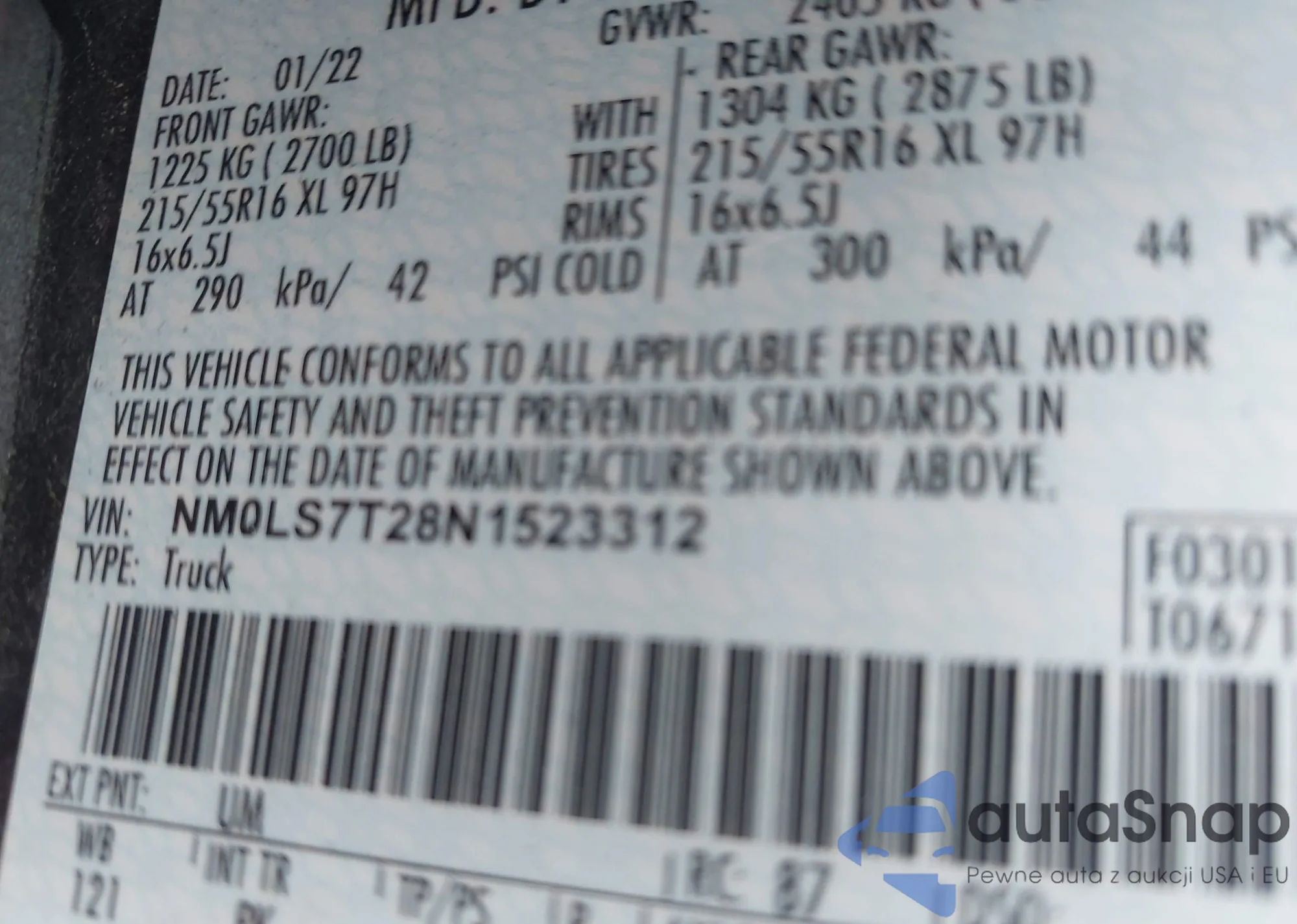 LOT: 42490699 VIN: NM0LS7T28N1523312