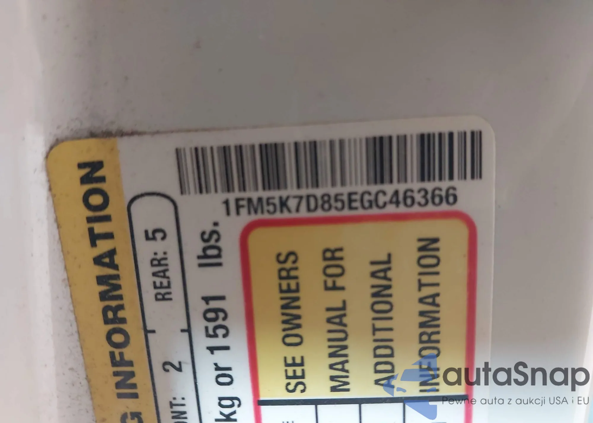 LOT: 42535255 VIN: 1FM5K7D85EGC46366