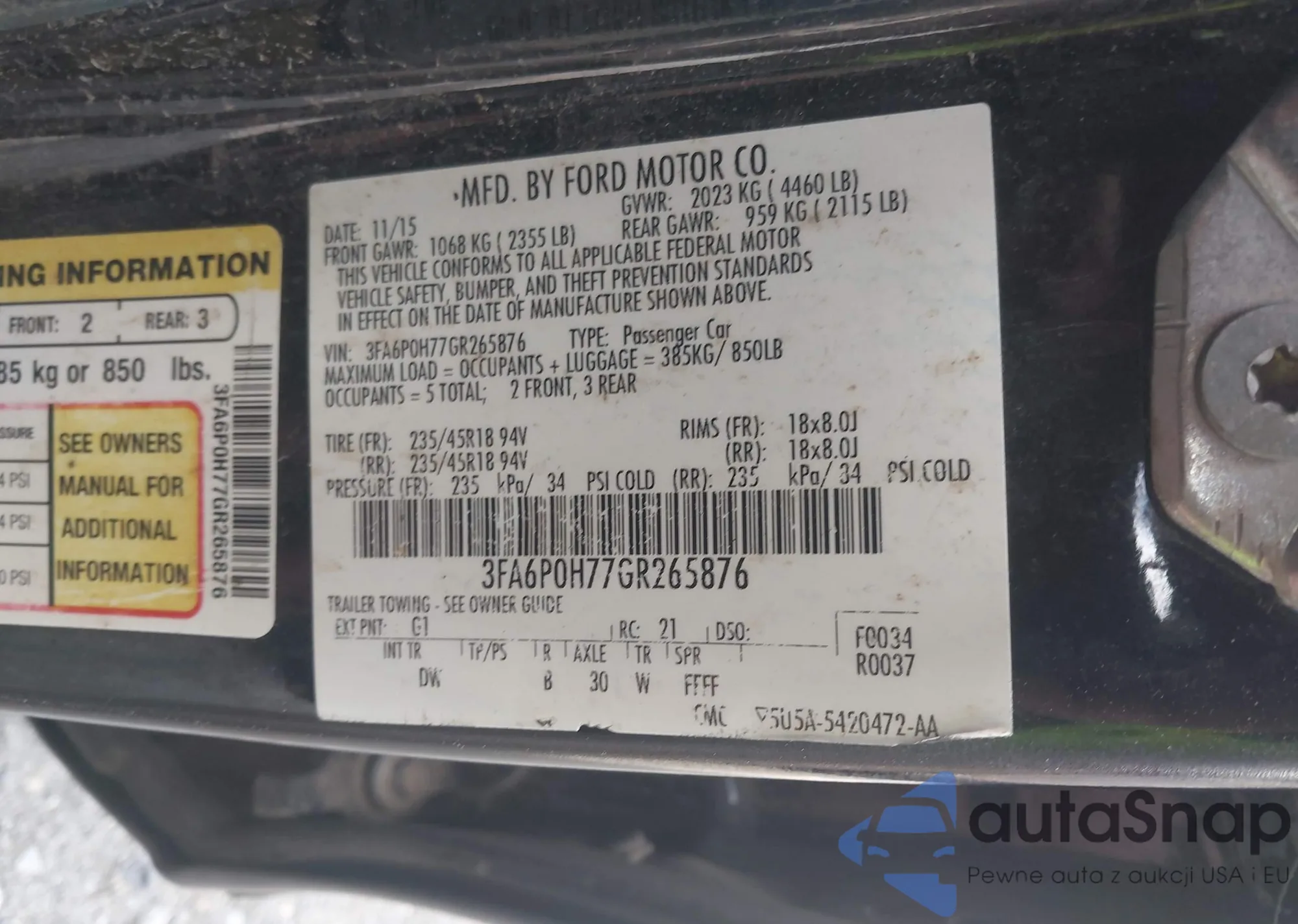• VIN 3FA6P0H77GR265876