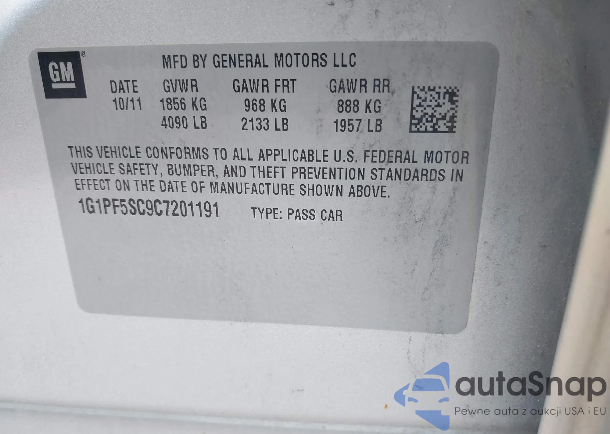 • VIN 1G1PF5SC9C7201191