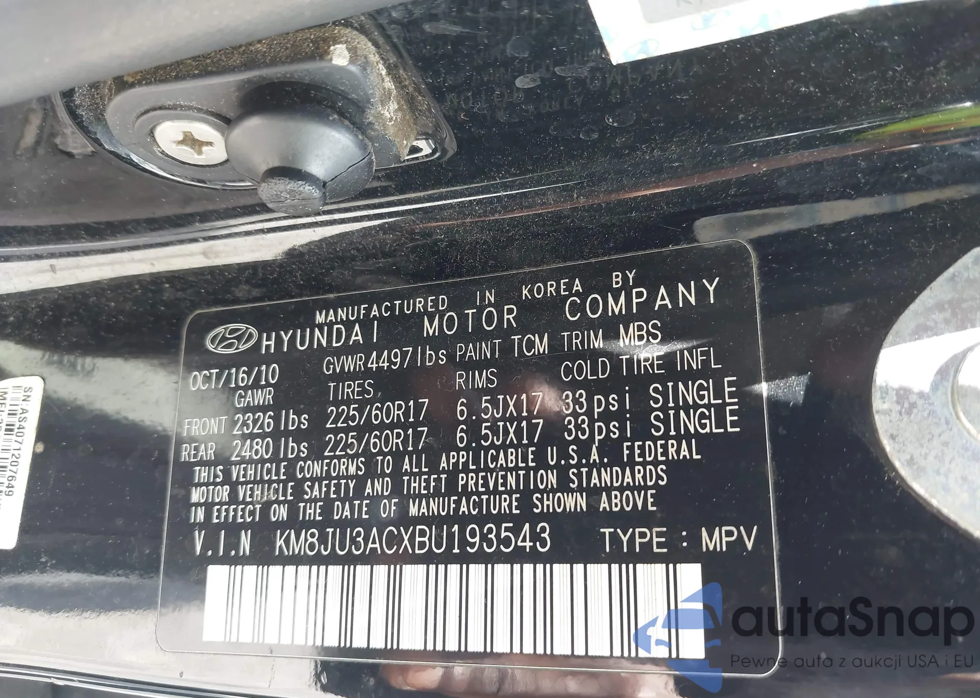 • VIN 5UXZV4C55BL407772