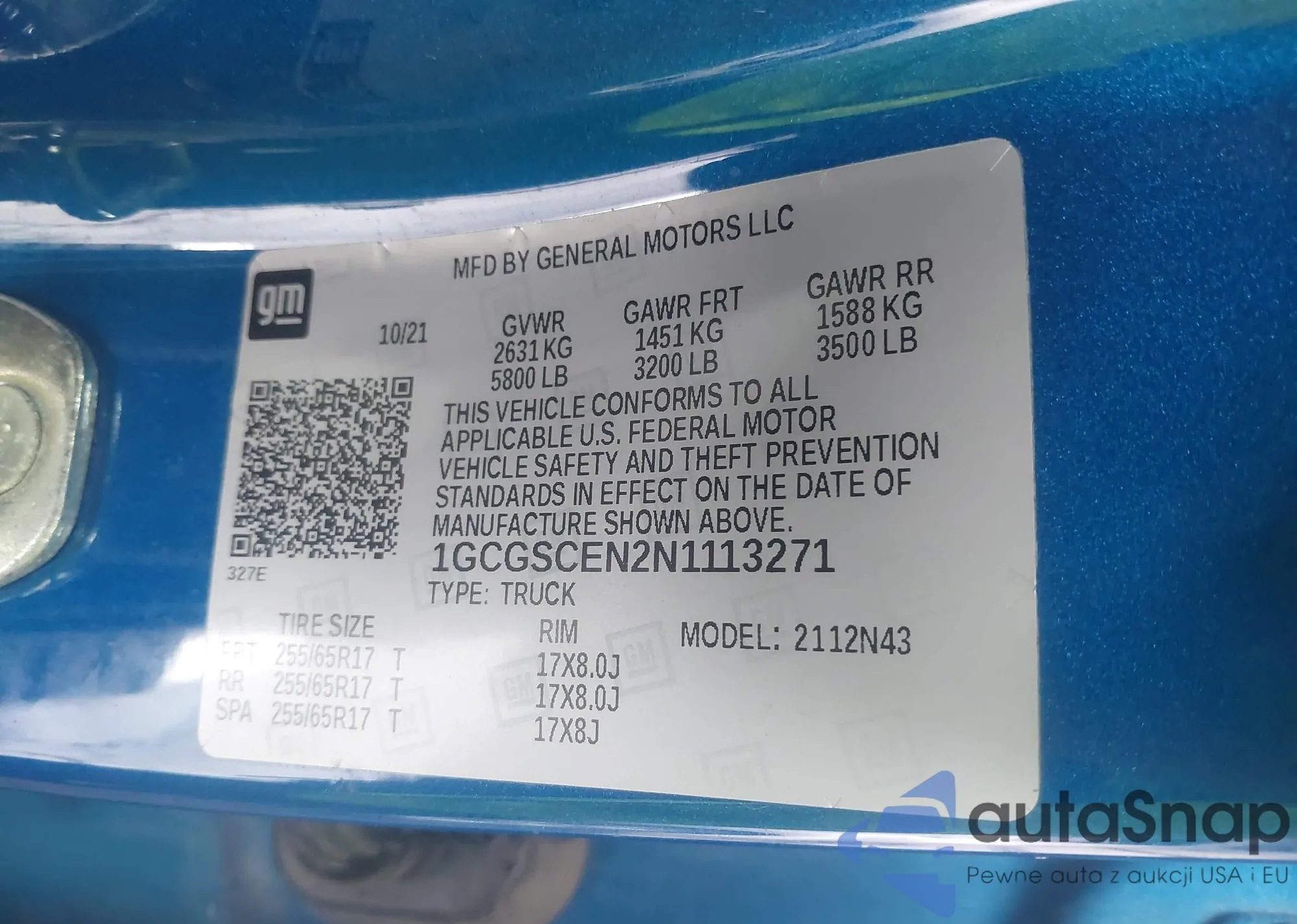 LOT: 42432884 VIN: 1GCGSCEN2N1113271