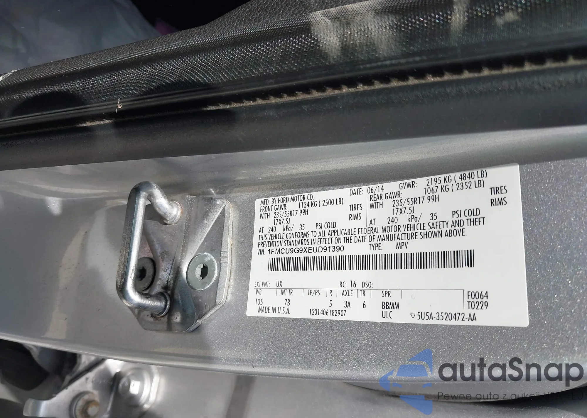 • VIN 1FMCU9MN8RUB13014