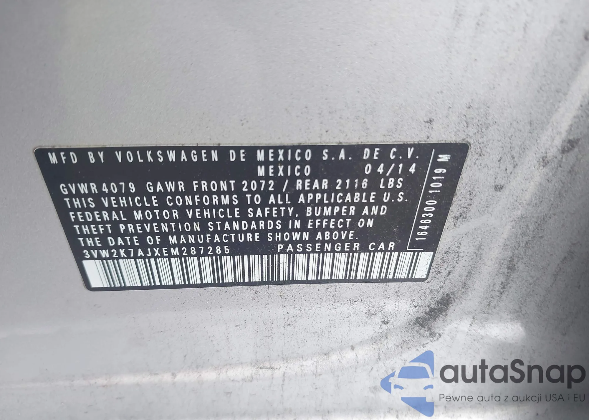 • VIN 3VW2K7AJXEM287285