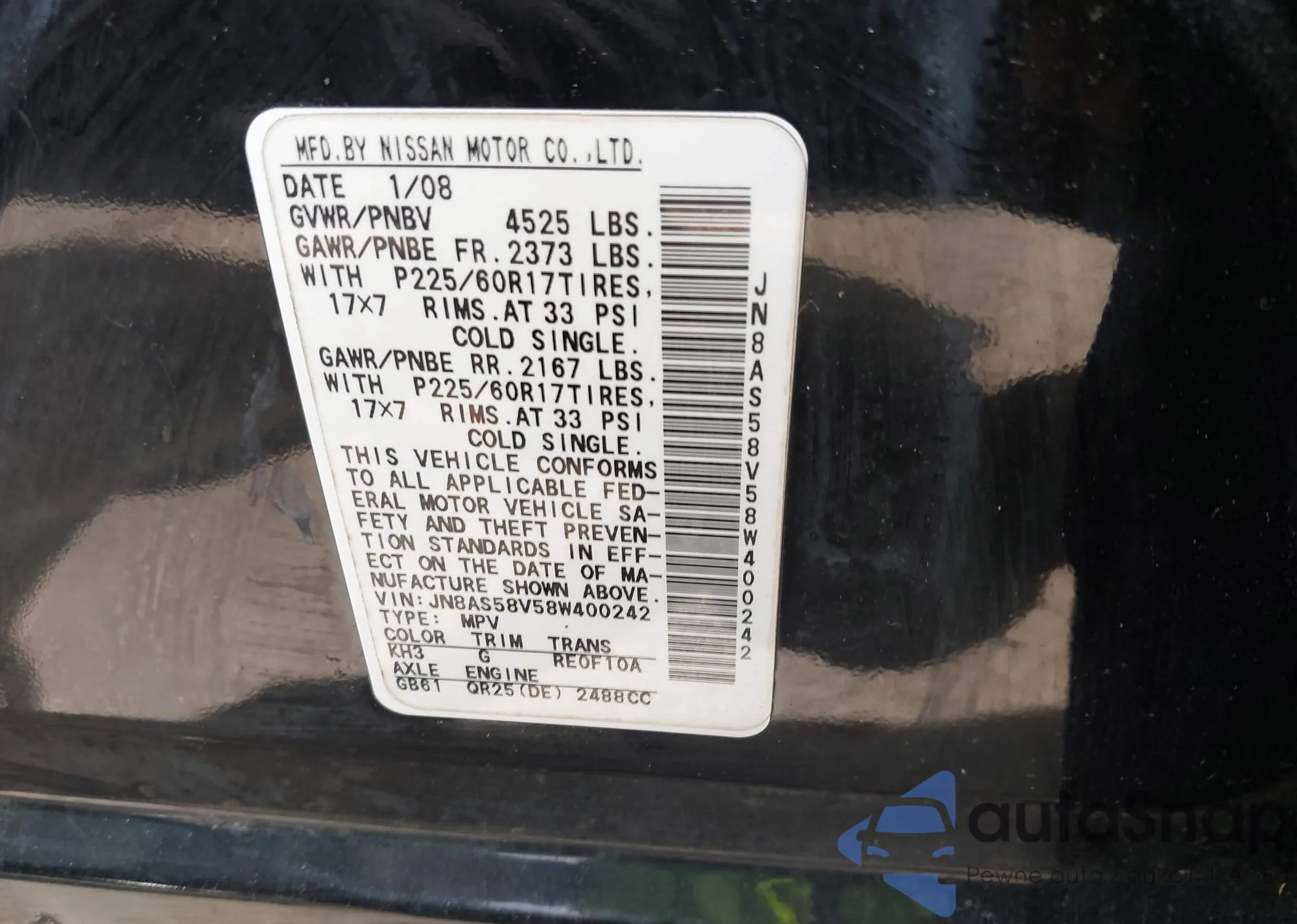• VIN JN8AS58V58W400242