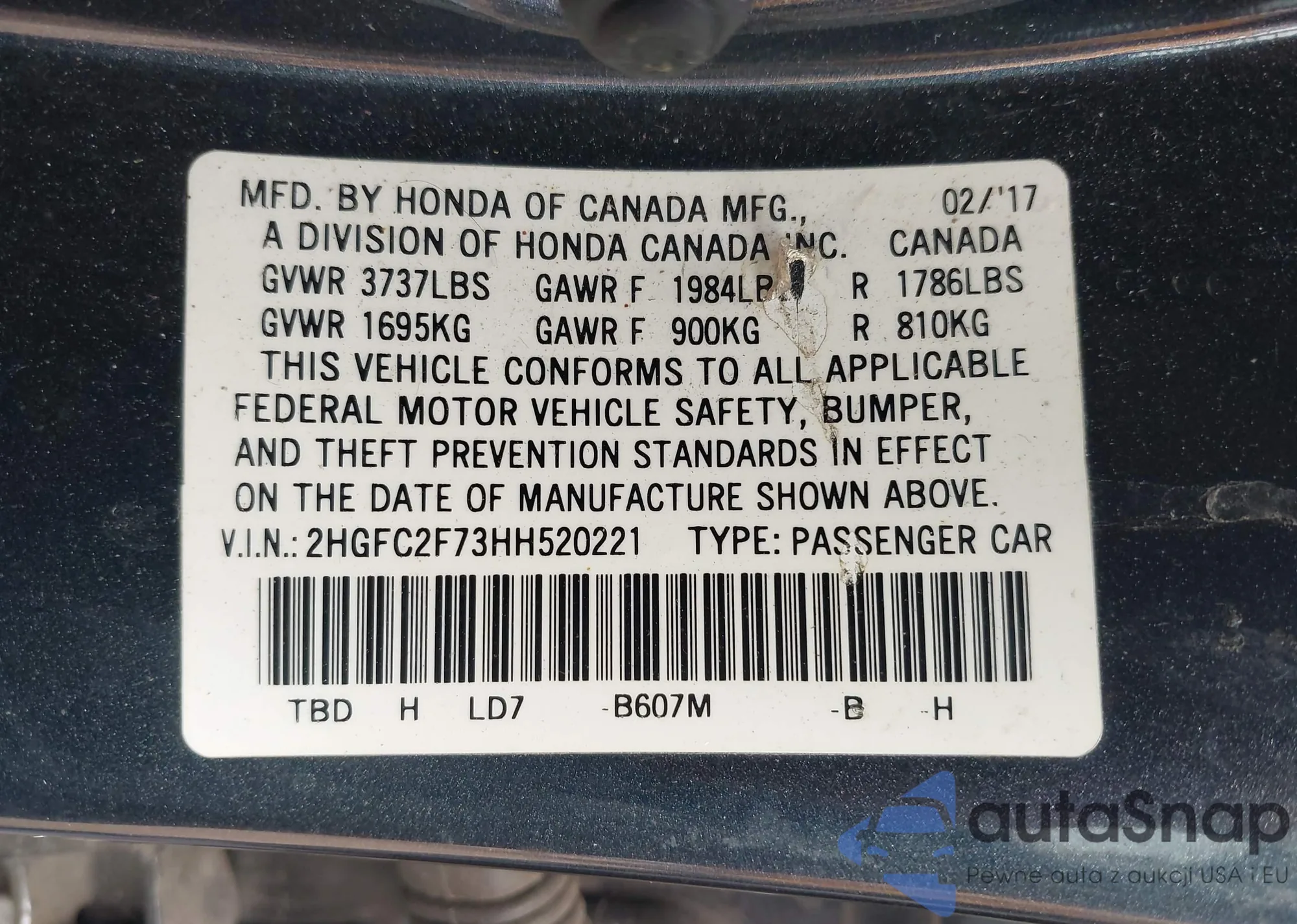 LOT: 42353231 VIN: SHSRD78546U443212