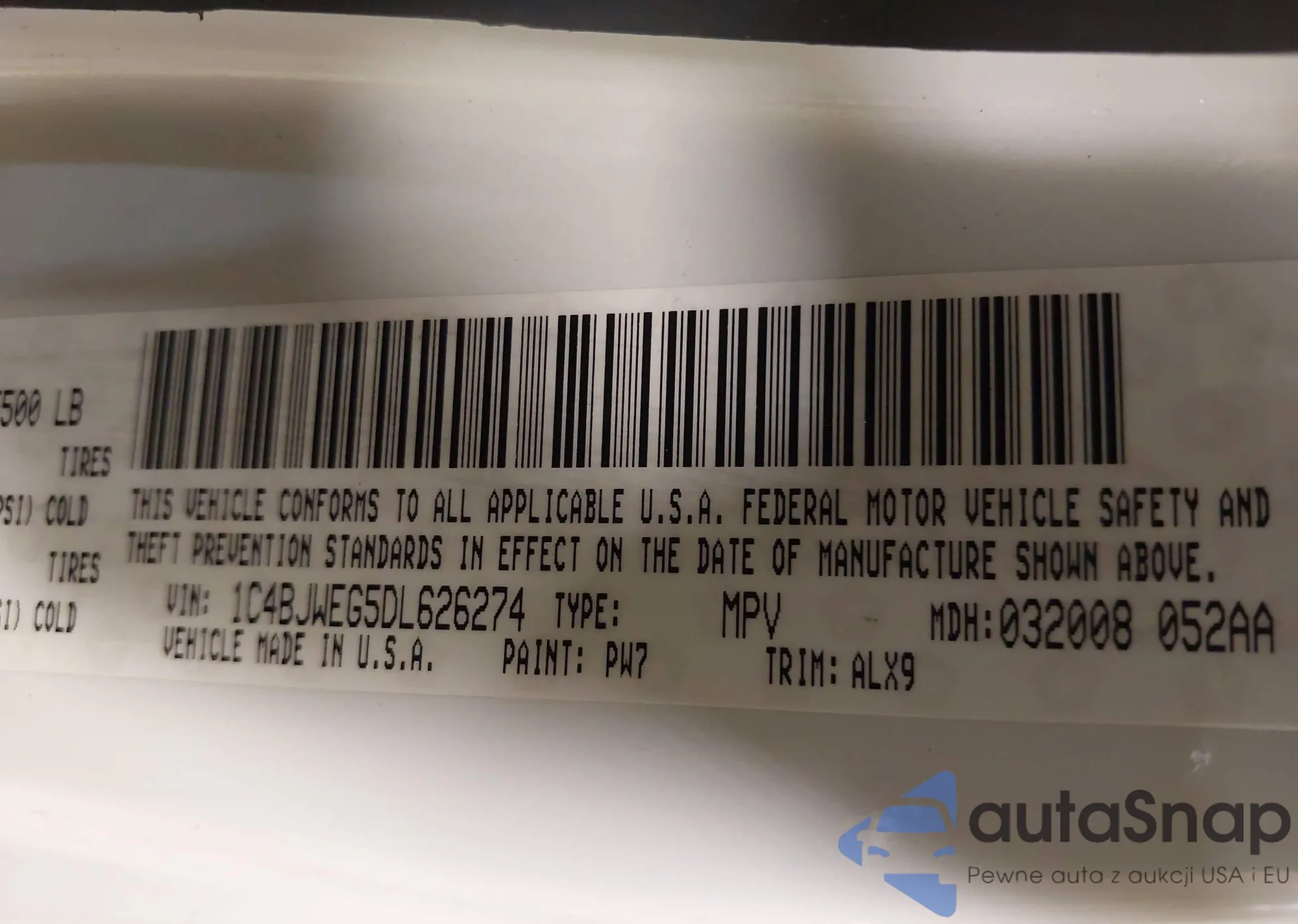 • VIN 1C4BJWEG5DL626274