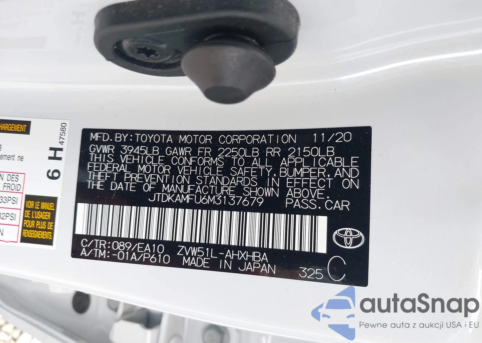 LOT: 42488129 VIN: JTDKAMFU6M3137679