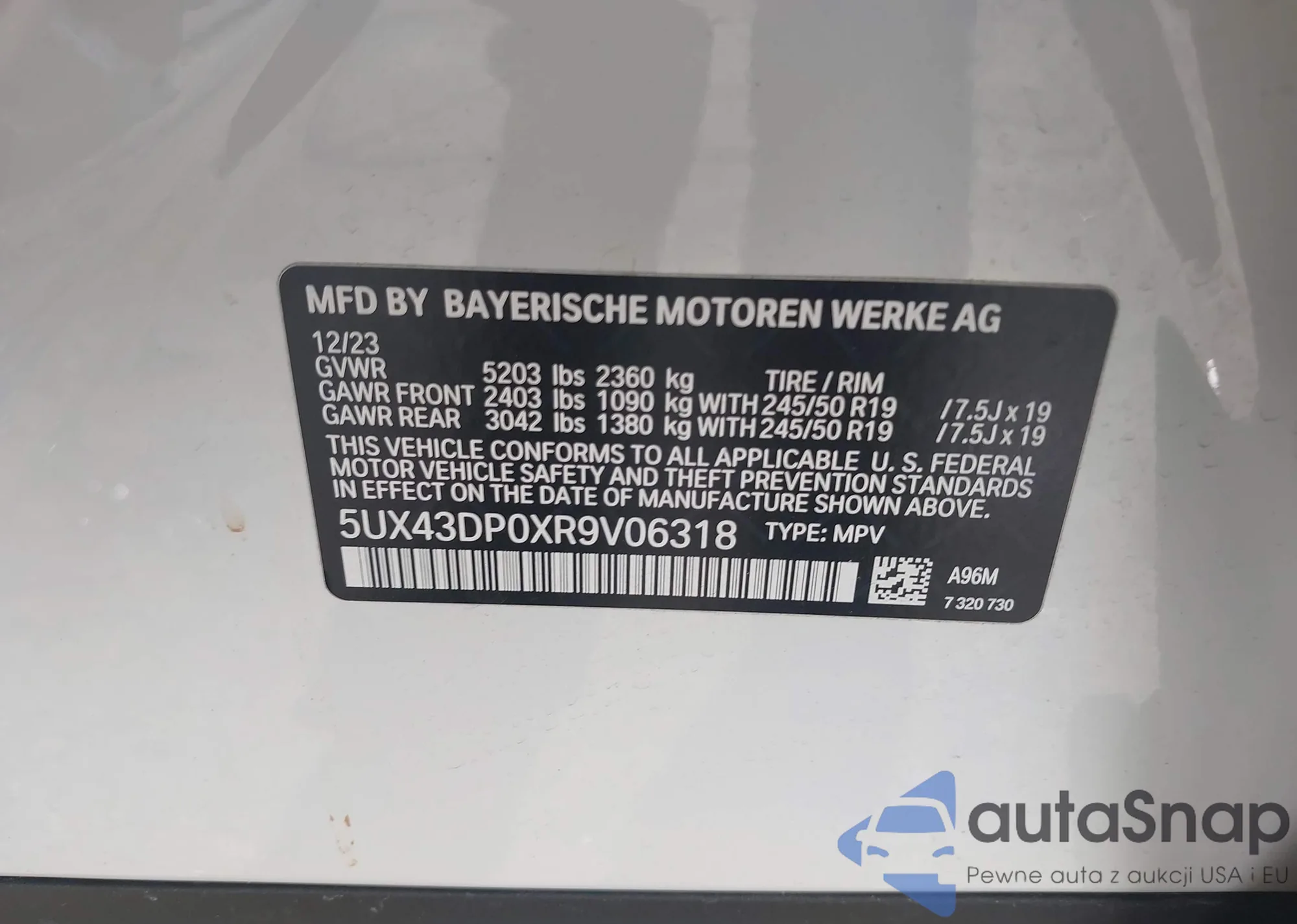 • VIN 5UX43DP0XR9V06318