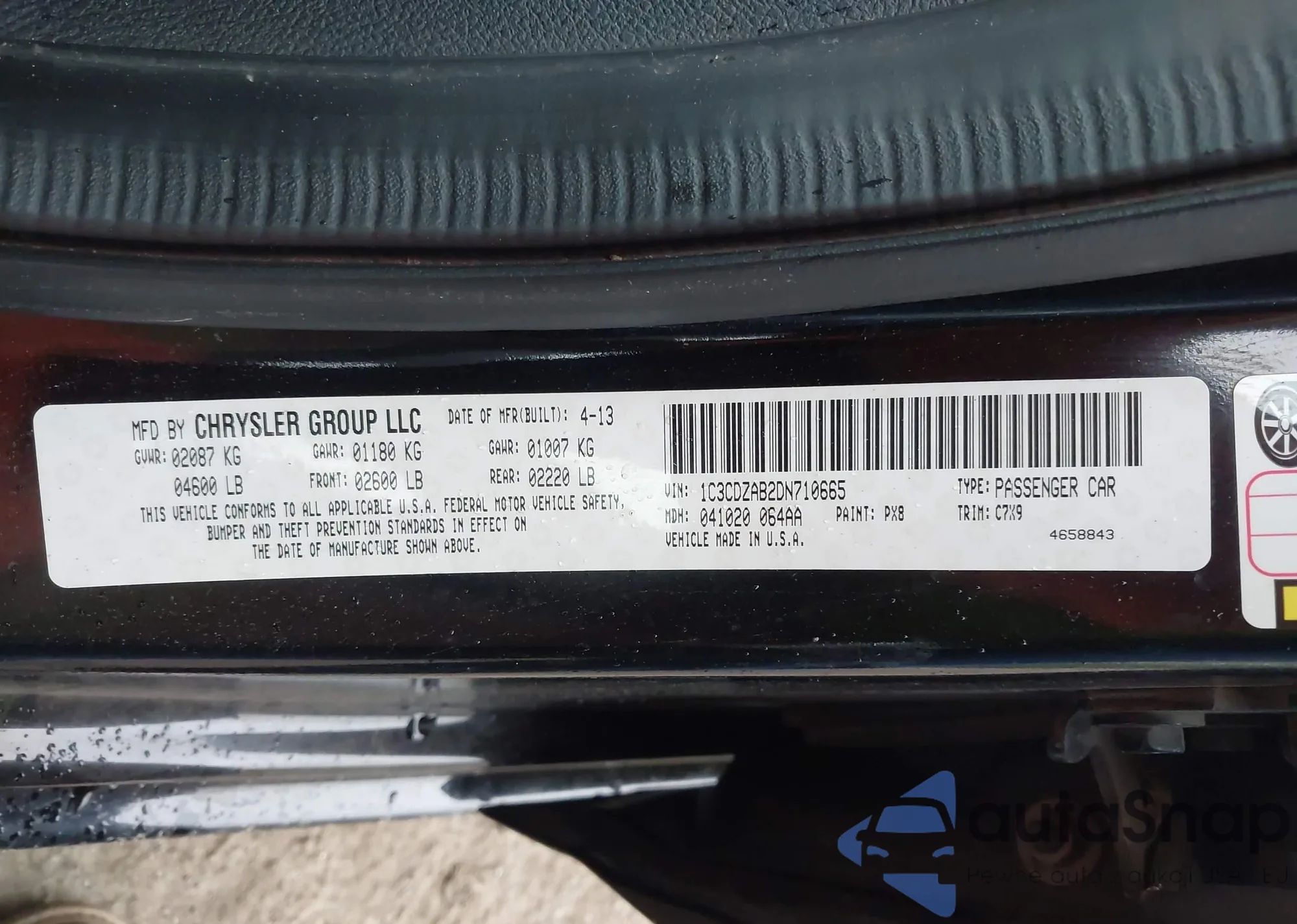 • VIN 1C3CDZAB2DN710665