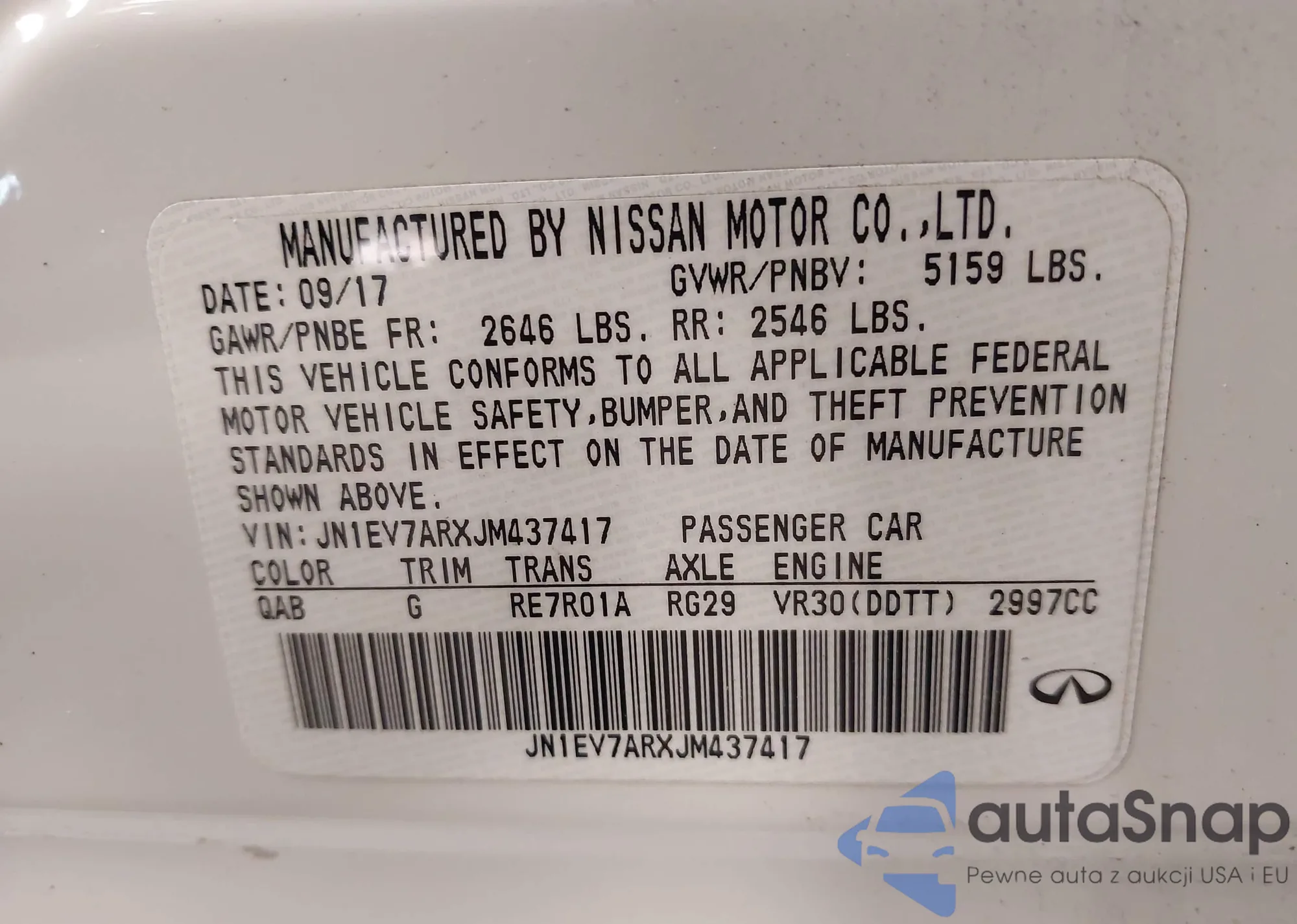 • VIN JN1EV7ARXJM437417