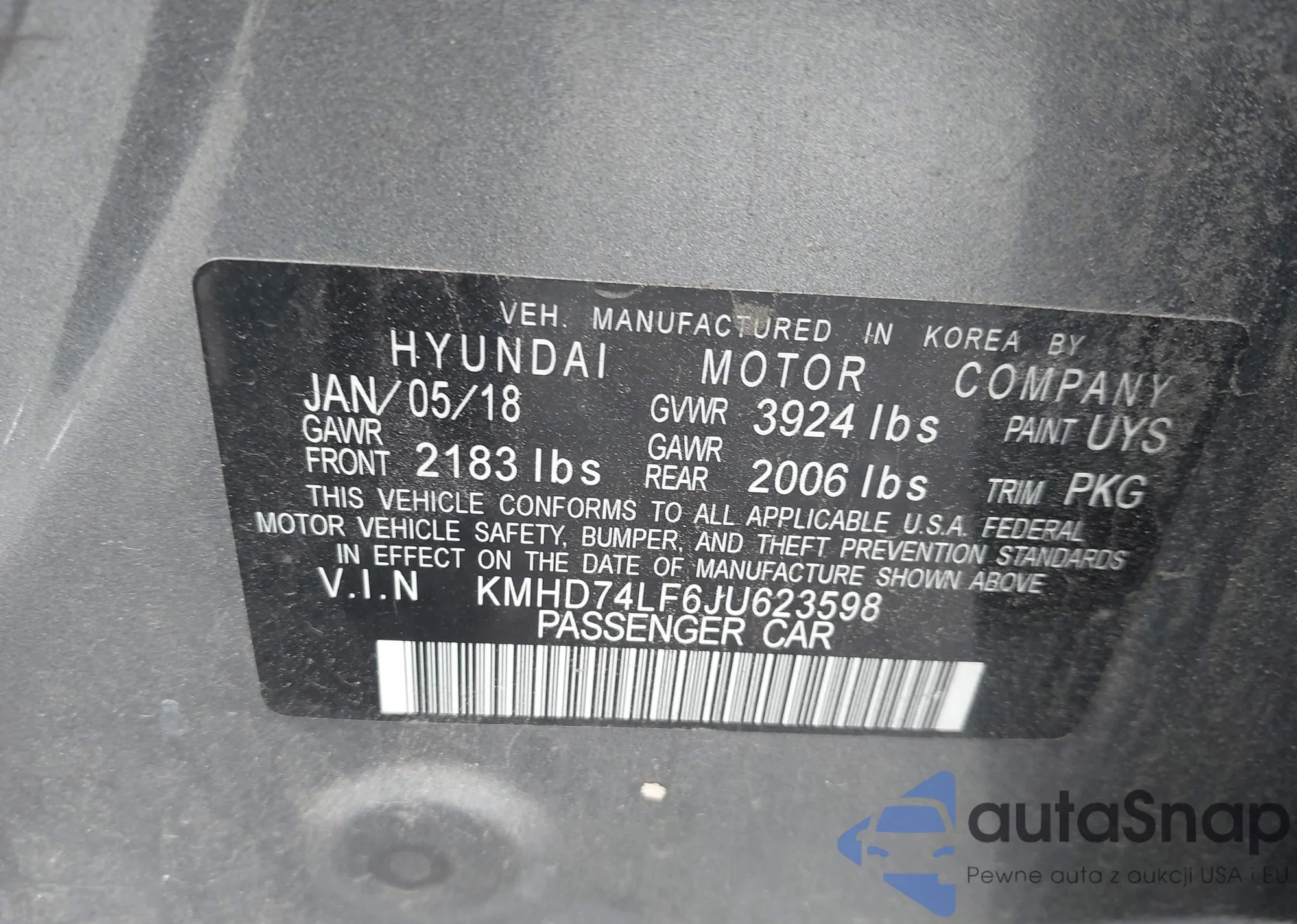 LOT: 42496745 VIN: KMHD74LF6JU623598