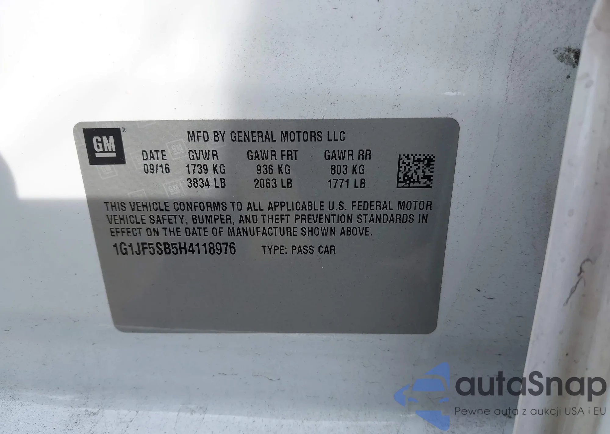 LOT: 42499383 VIN: 1G1JF5SB5H4118976