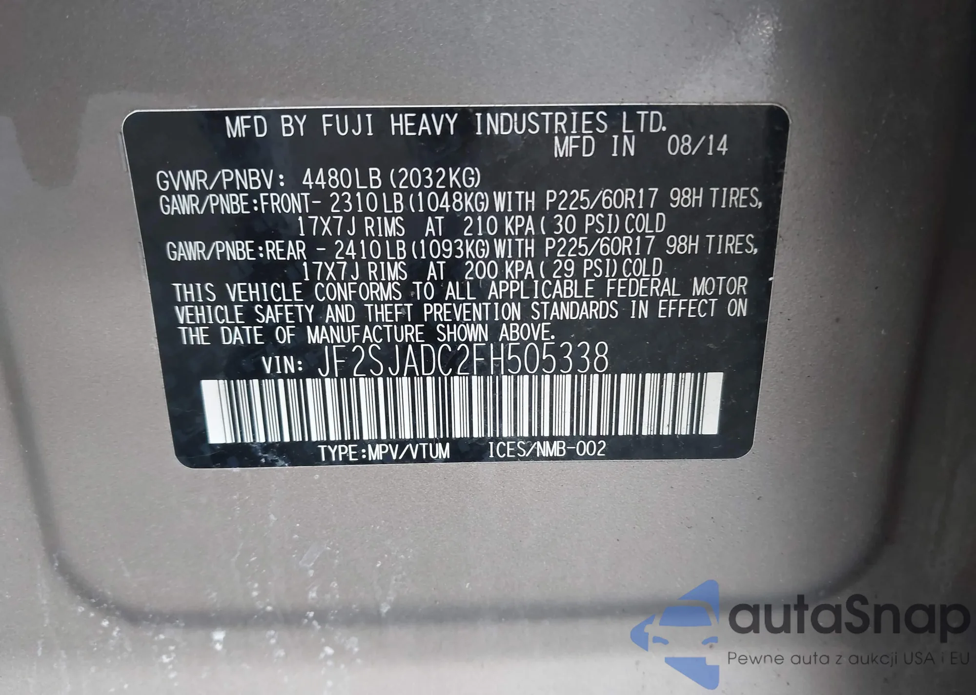 LOT: 42567063 VIN: JM3KFBCM4M1313612