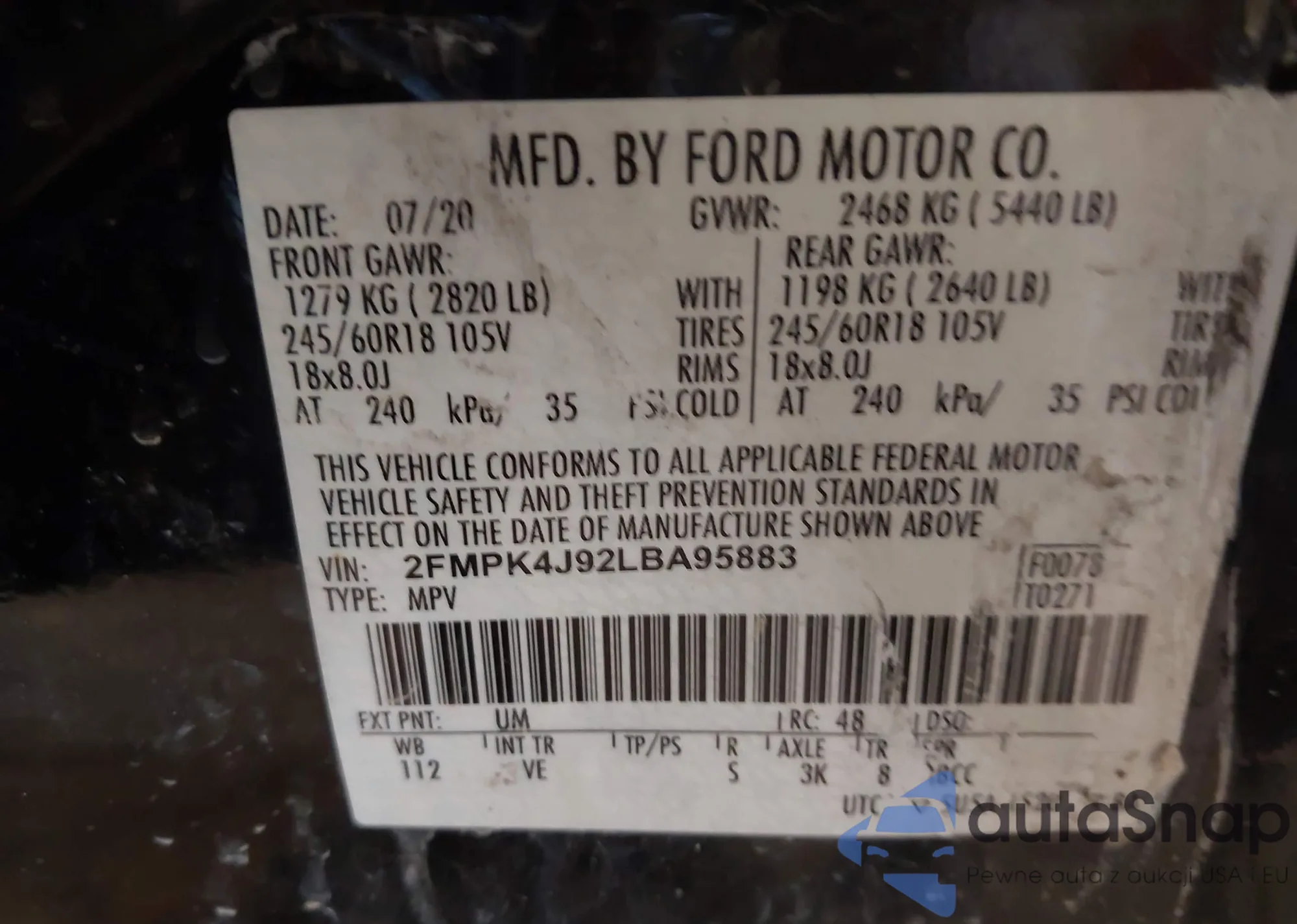 • VIN 2FMPK4J92LBA95883
