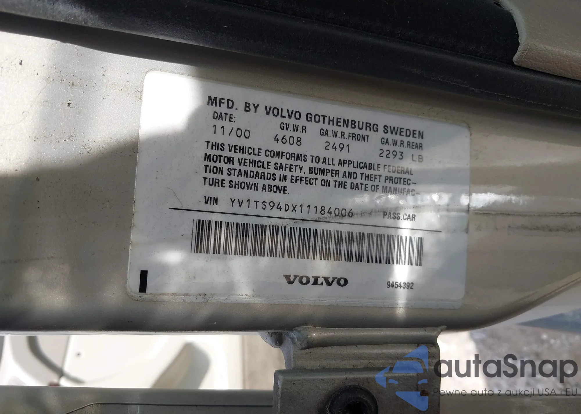 • VIN YV1TS94DX11184006