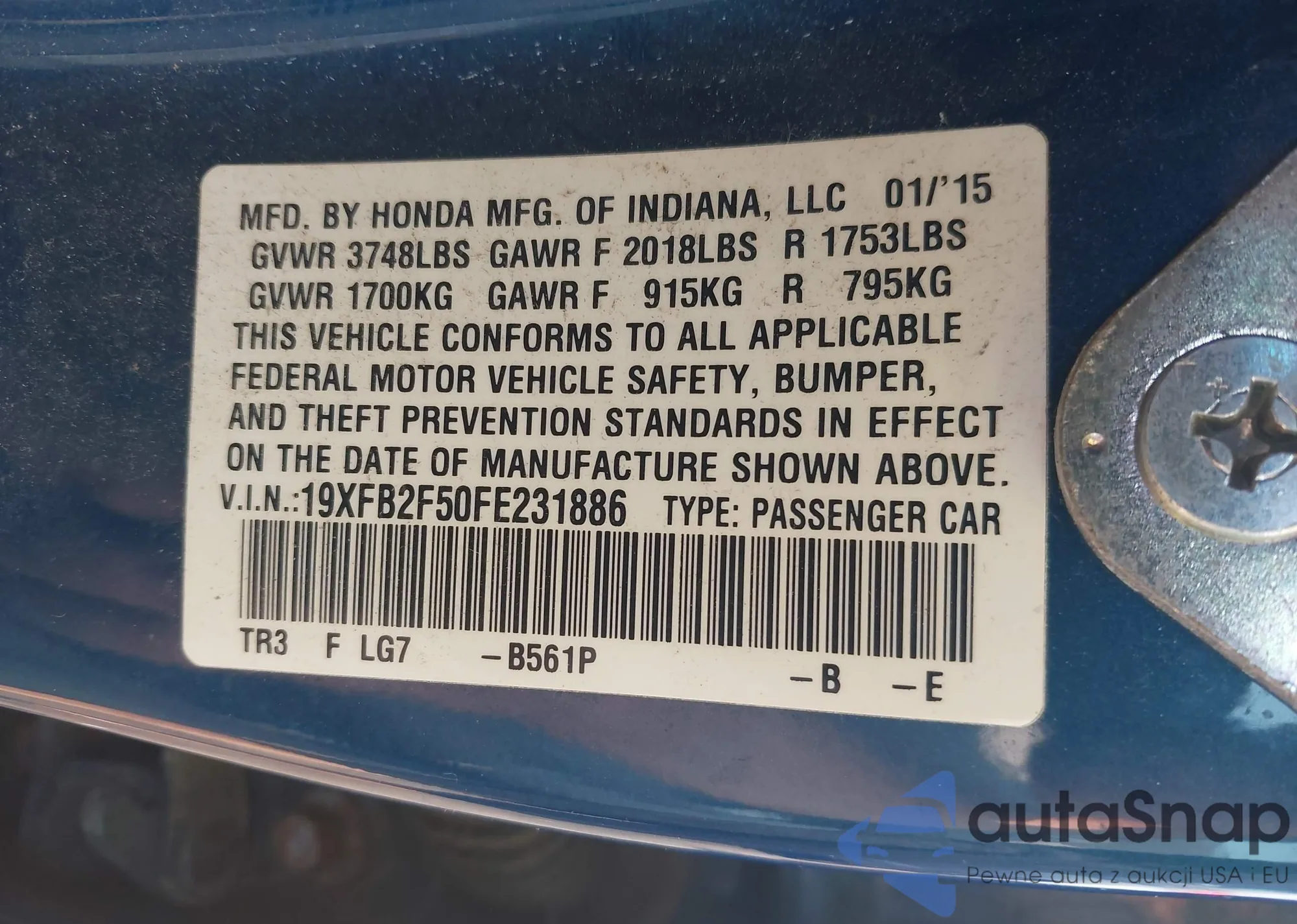 • VIN 19XFB2F50FE231886