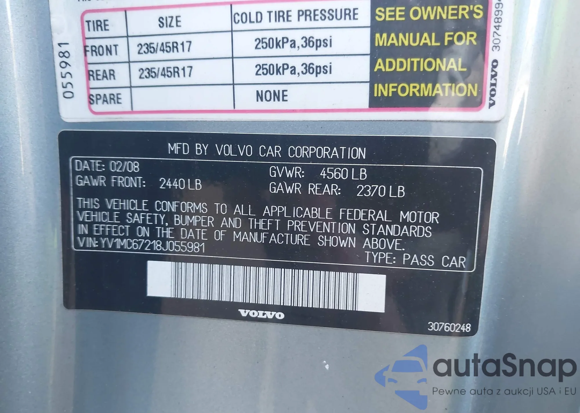 LOT: 42696695 VIN: YV1MC67218J055981