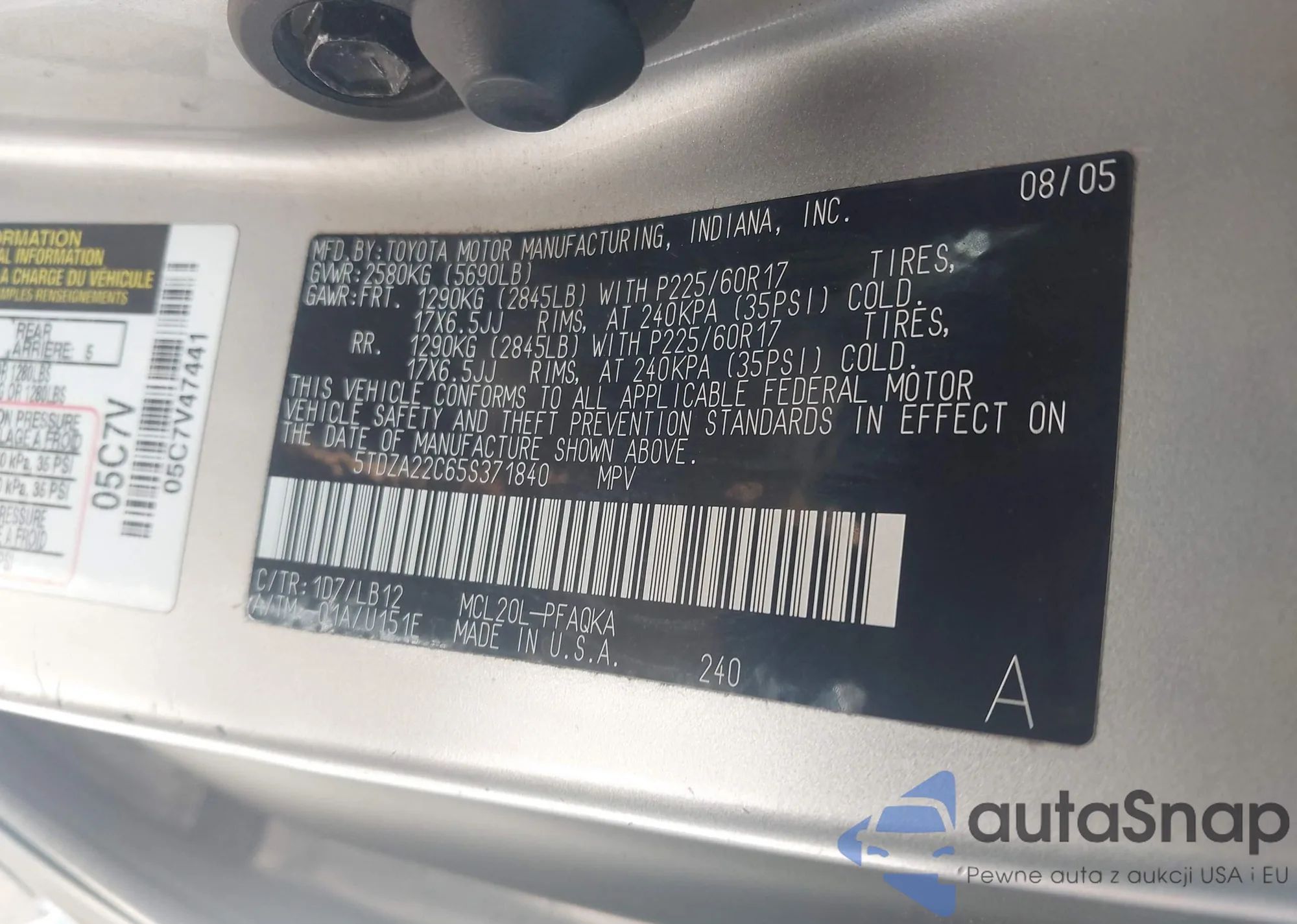 LOT: 42749723 VIN: 5TDZA22C65S371840