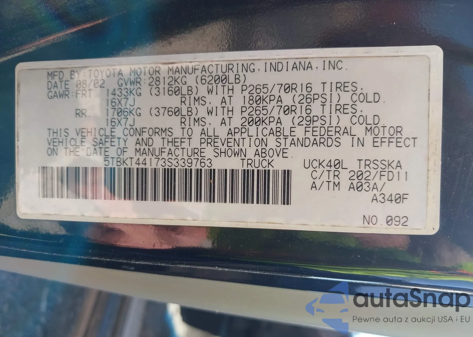 • VIN 5UXFA53553LV97272