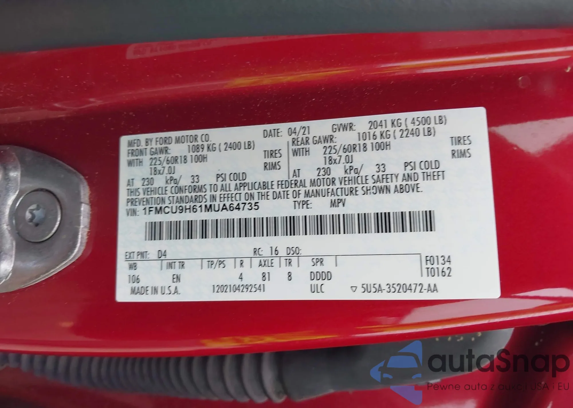 LOT: 65372695 VIN: 1FMCU9GN1RUA87366