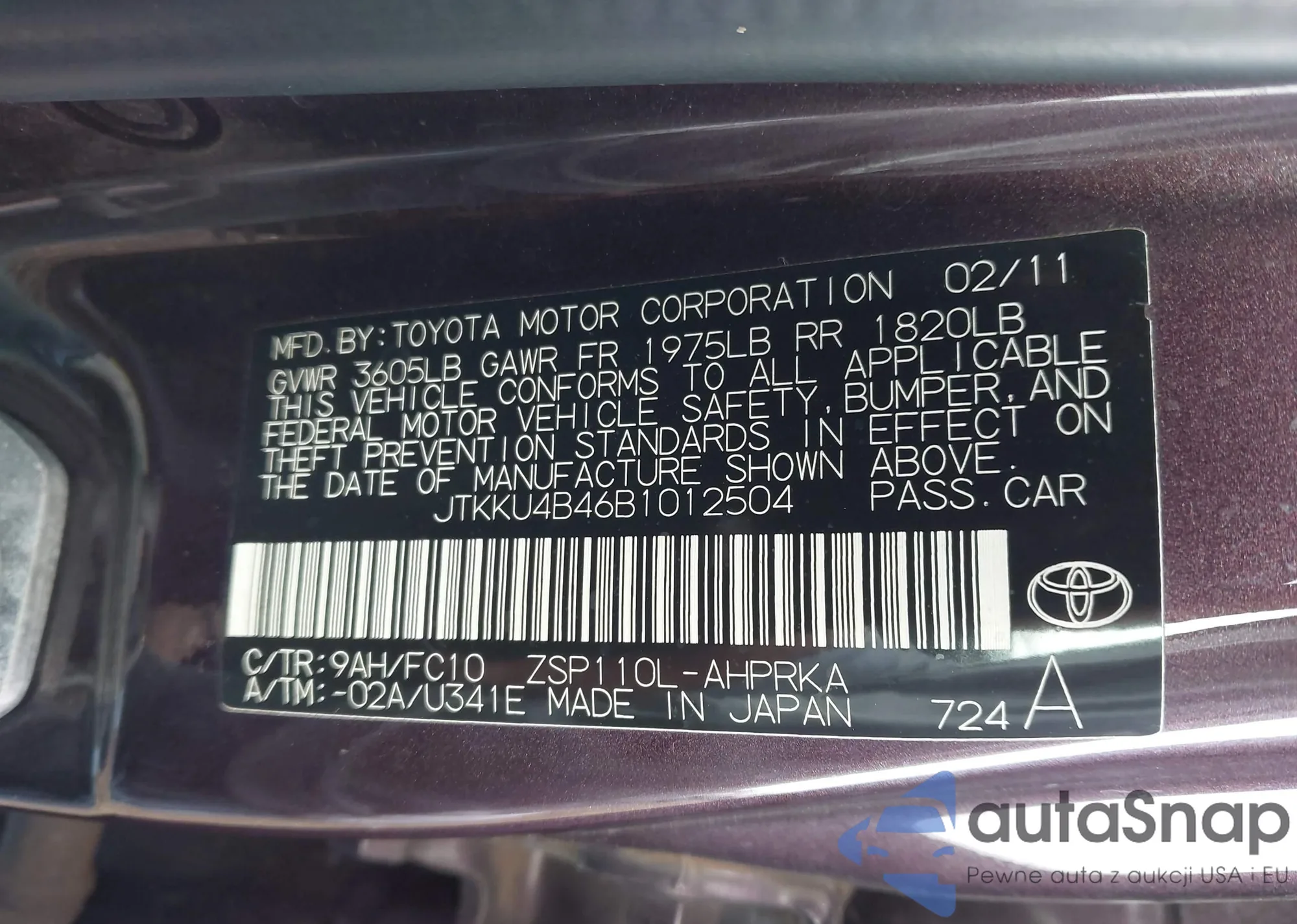 • VIN JTKKU4B46B1012504