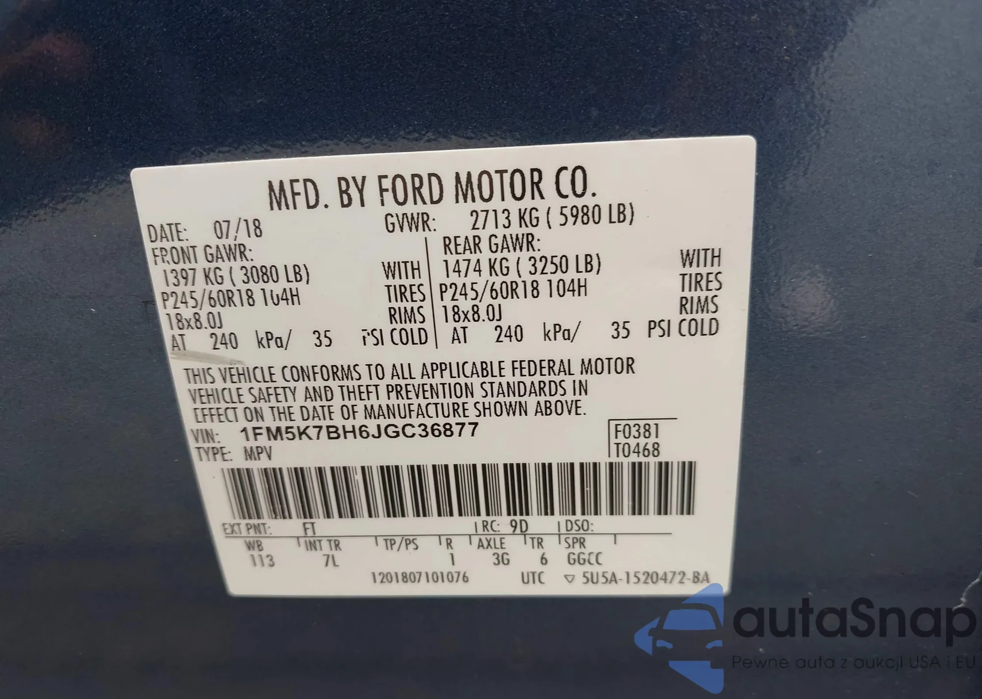 • VIN 1FMCU9DZ5MUA34881