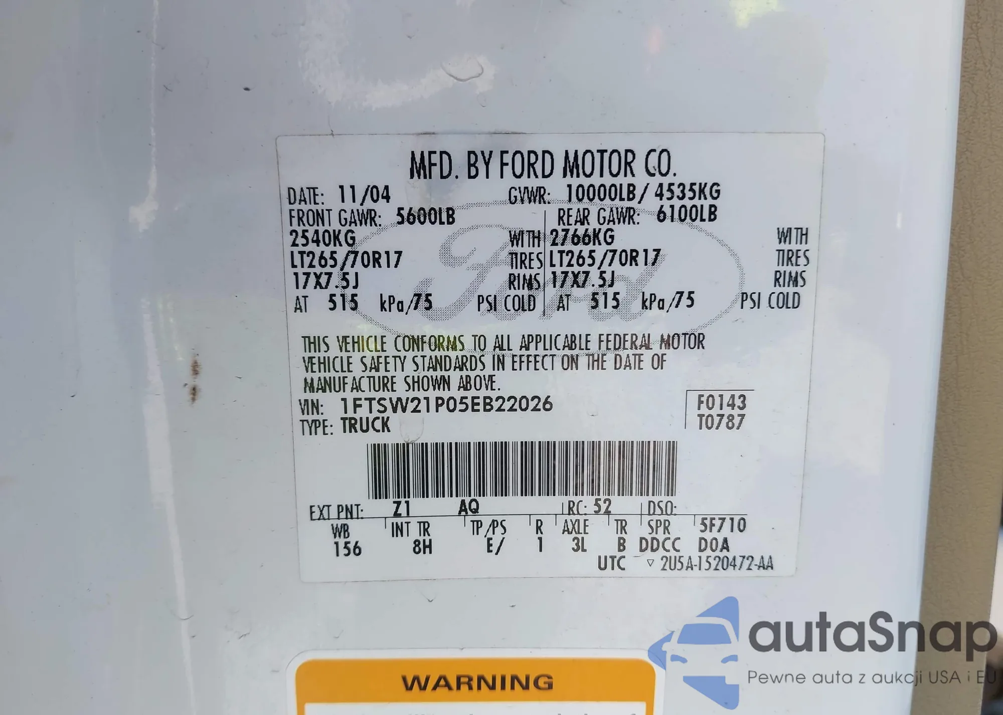 • VIN 1FTSW21P05EB22026