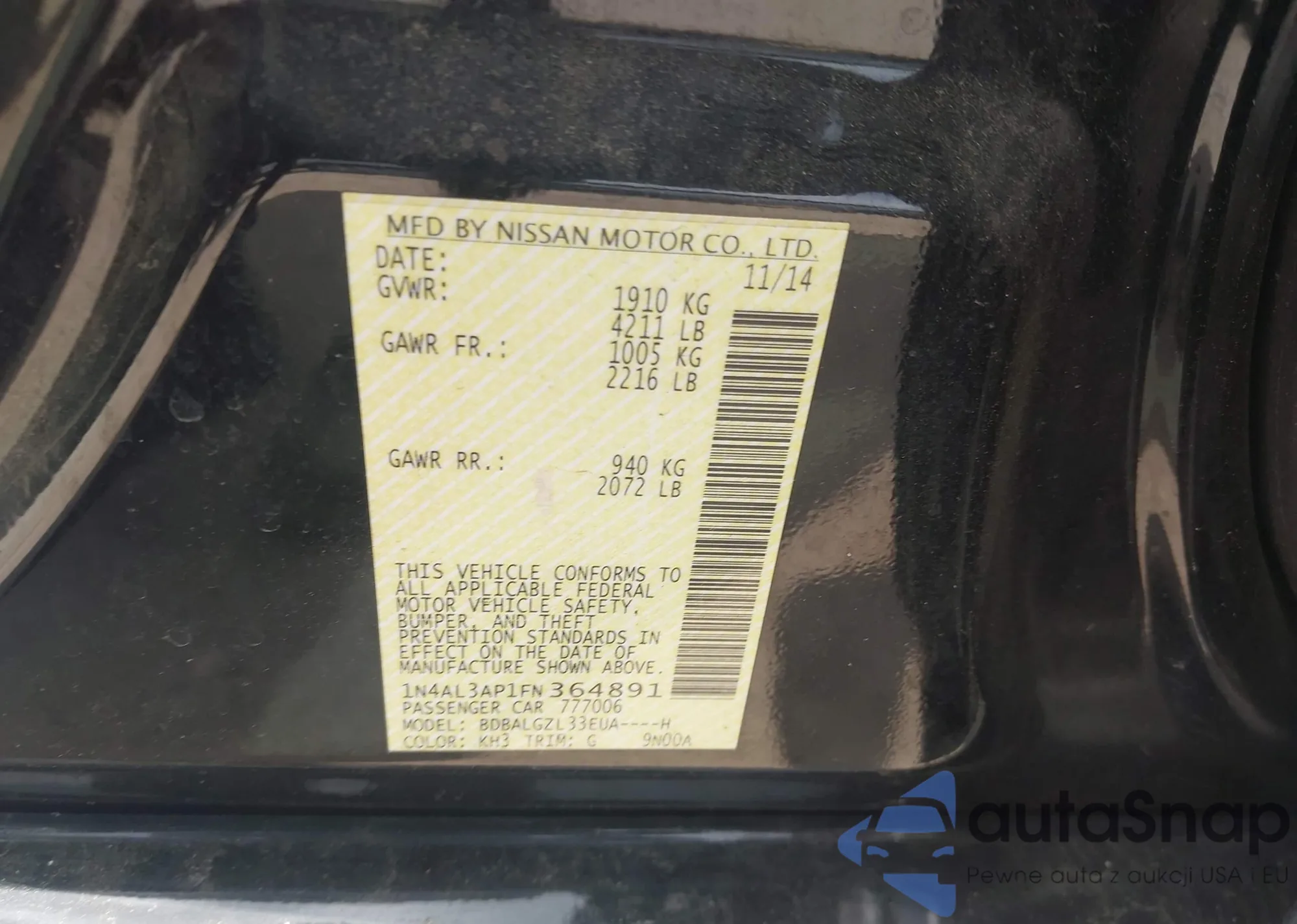 LOT: 42763816 VIN: 1N4AL3AP1FN364891