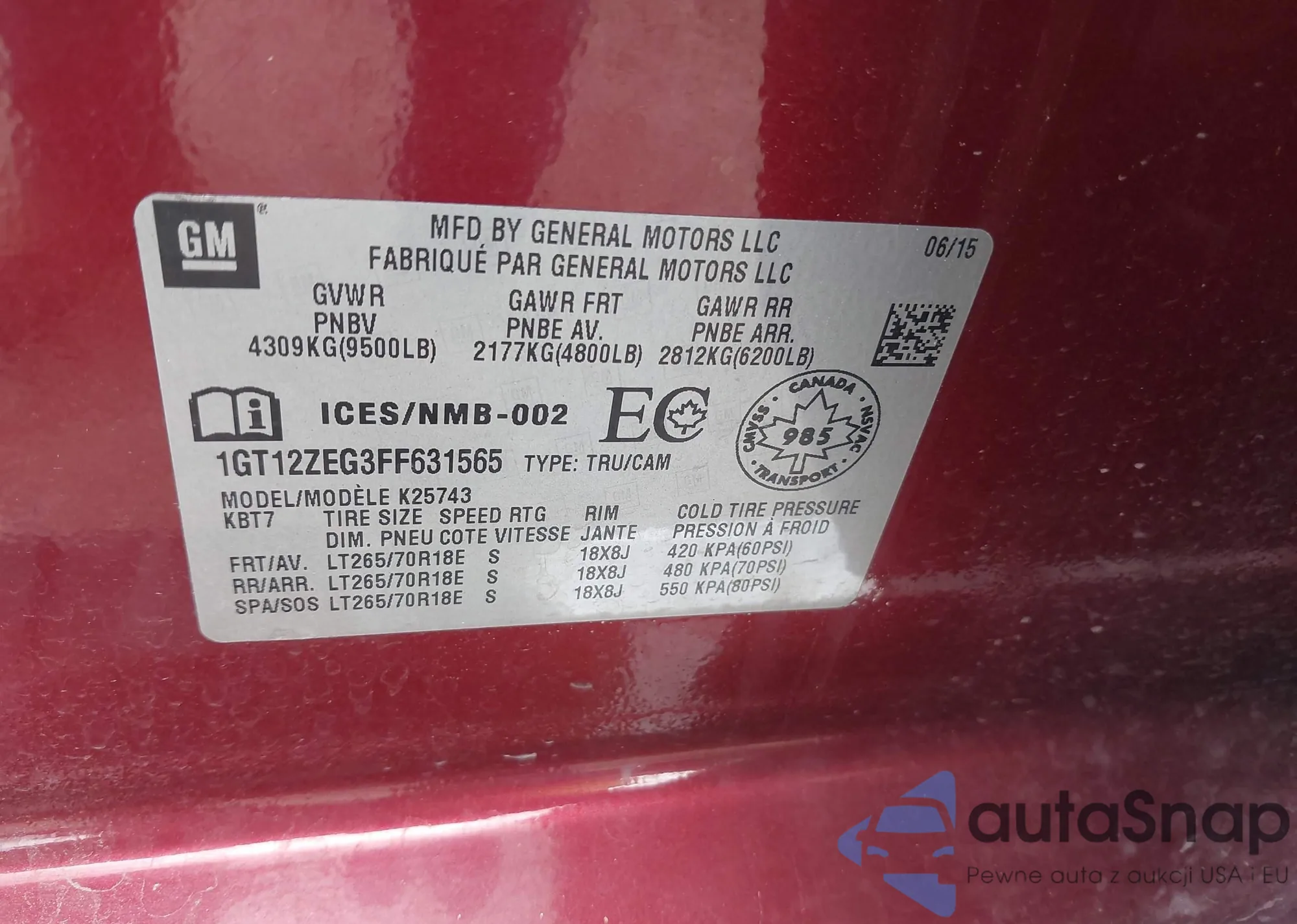 • VIN 1GT12ZEG3FF631565