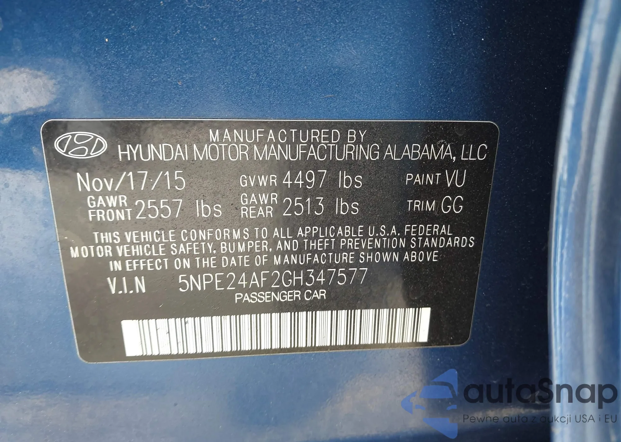 • VIN 5NPE24AF2GH347577