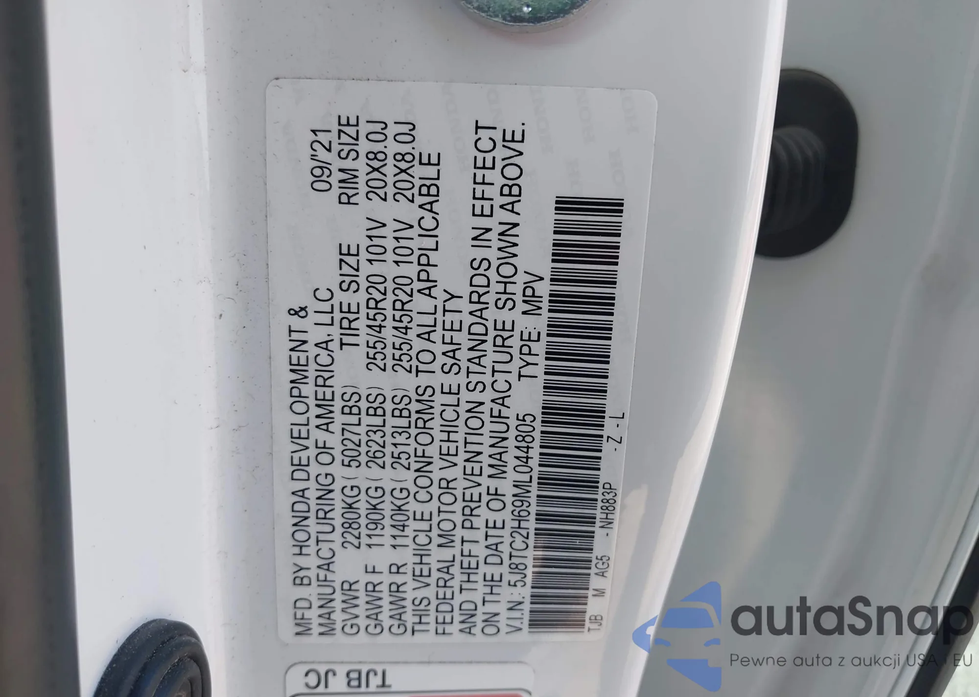 LOT: 42777495 VIN: 5J8TC2H69ML044805