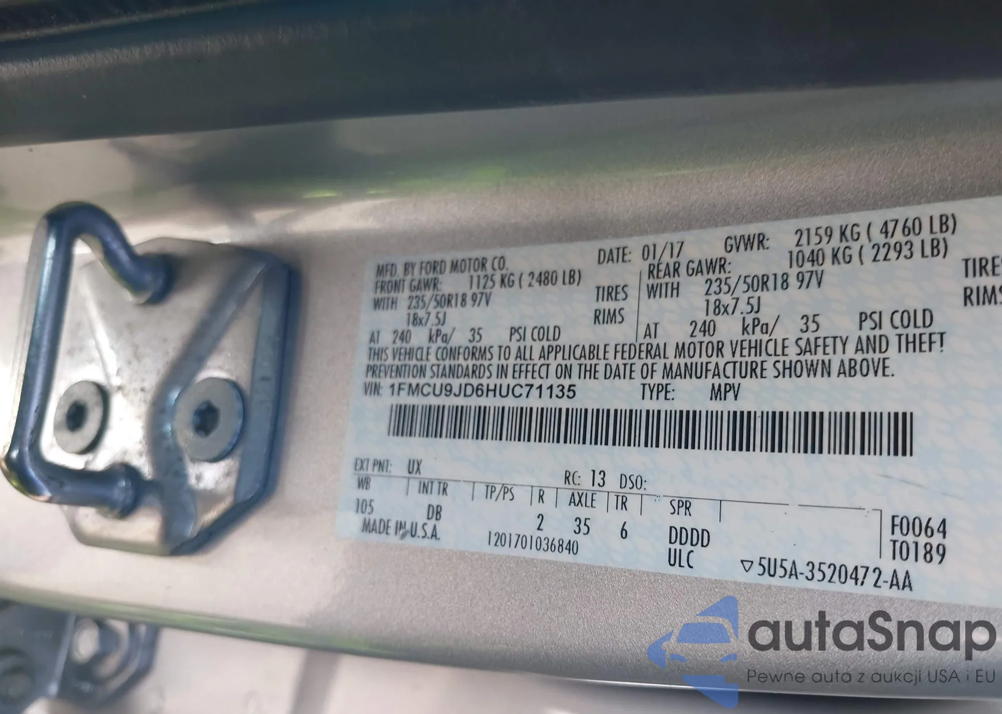 • VIN 1FMCU9MN2SUA68500
