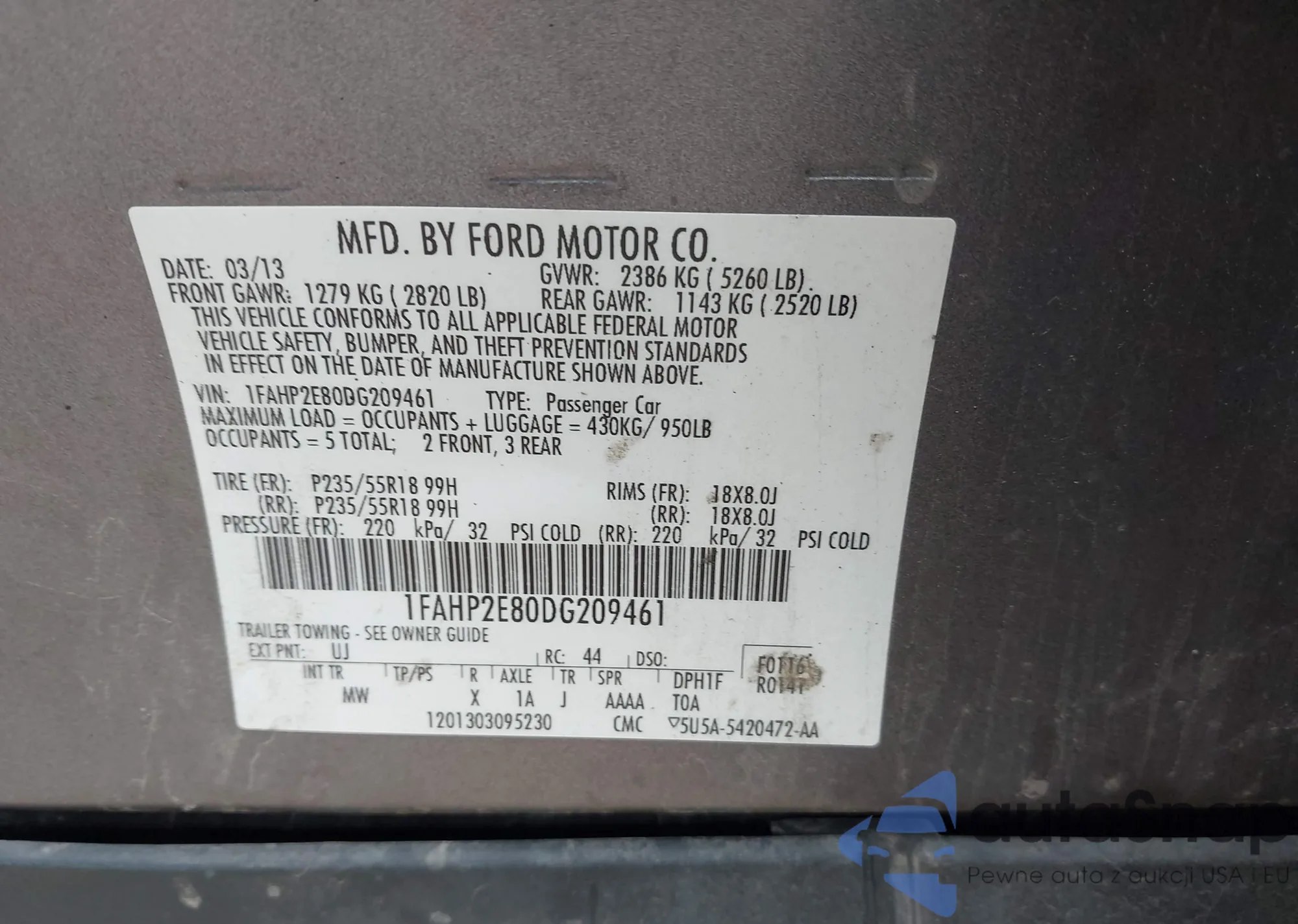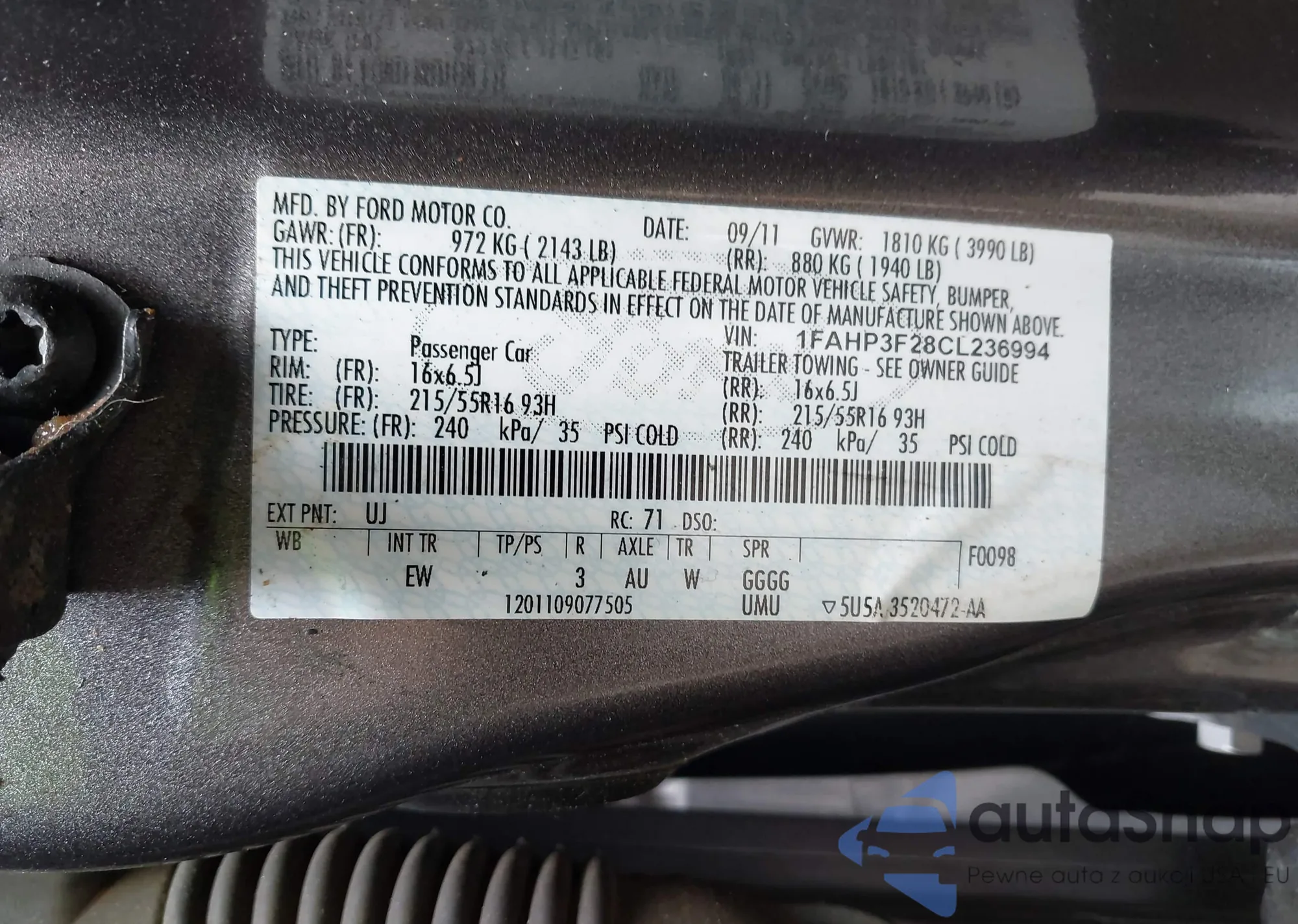 LOT: 42508669 VIN: 1FAHP3F28CL236994