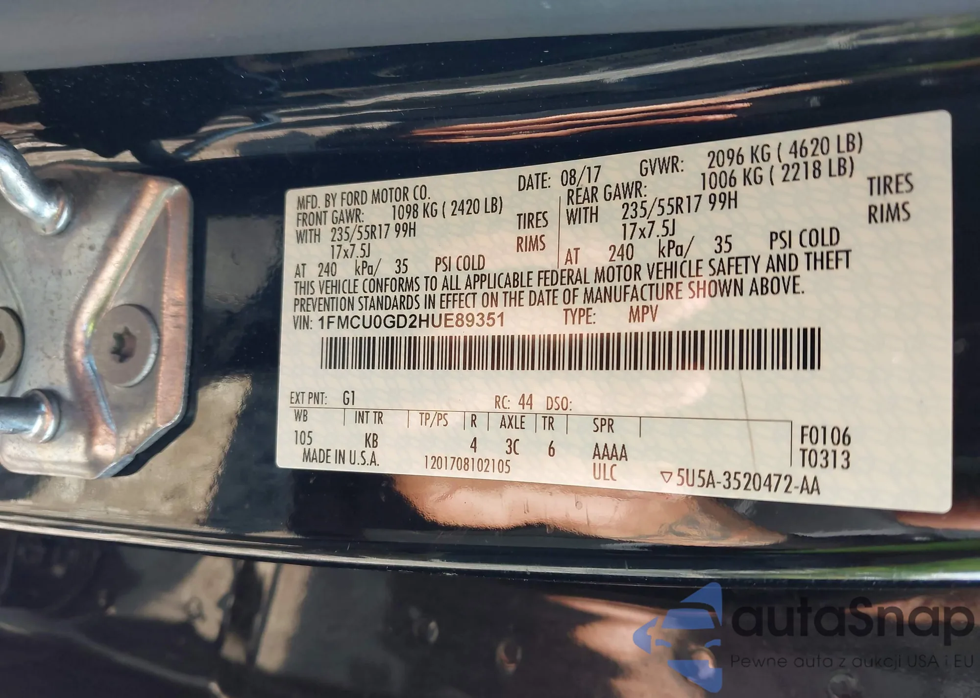 LOT: 42658188 VIN: 1FMCU0GD2HUE89351