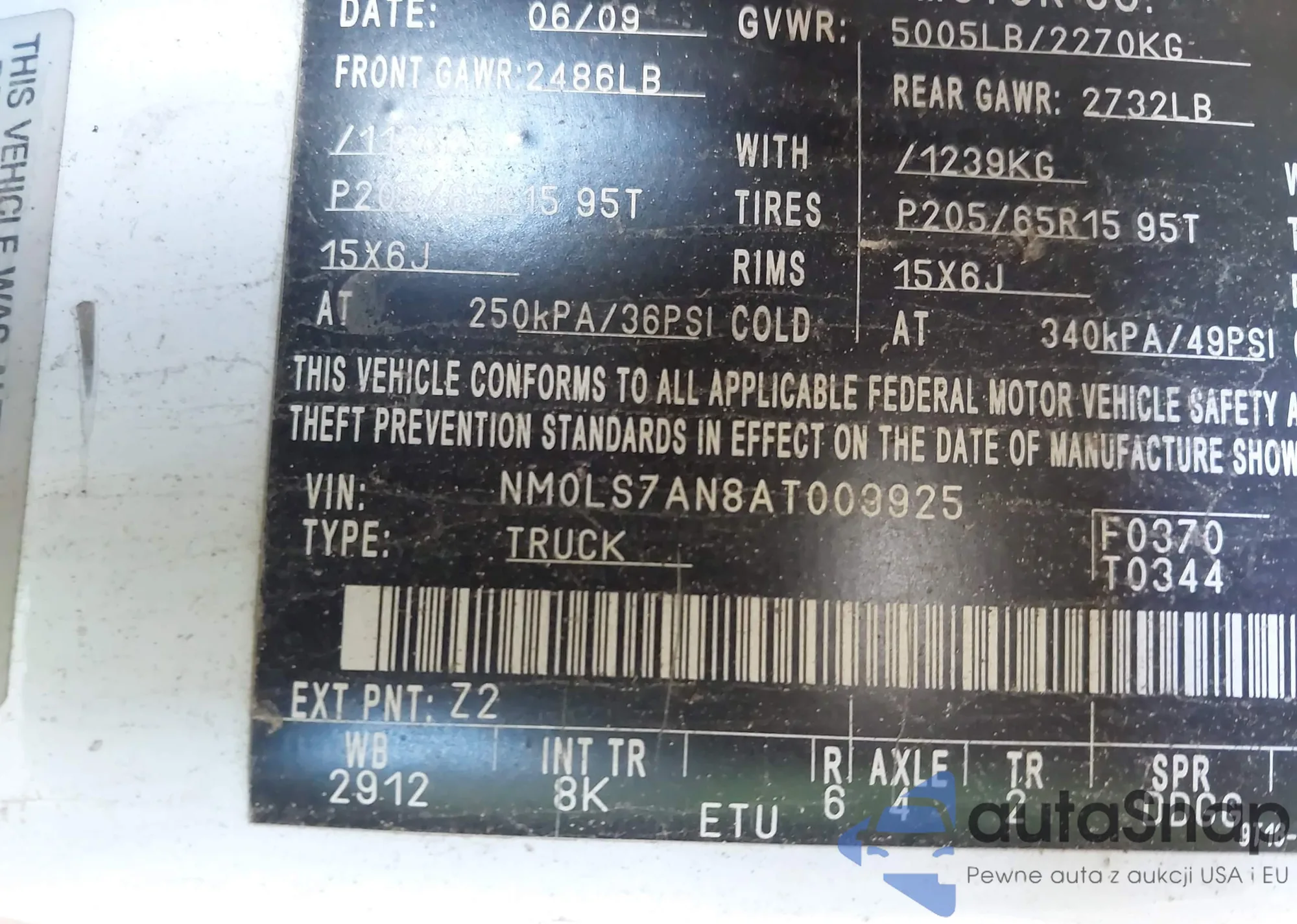 • VIN NM0LS7AN8AT009925