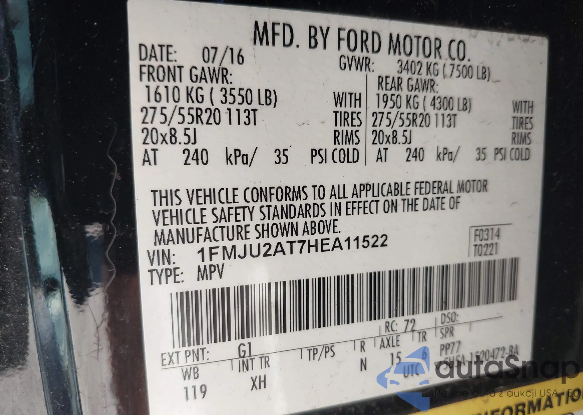 • VIN 1FMJU2AT7HEA11522