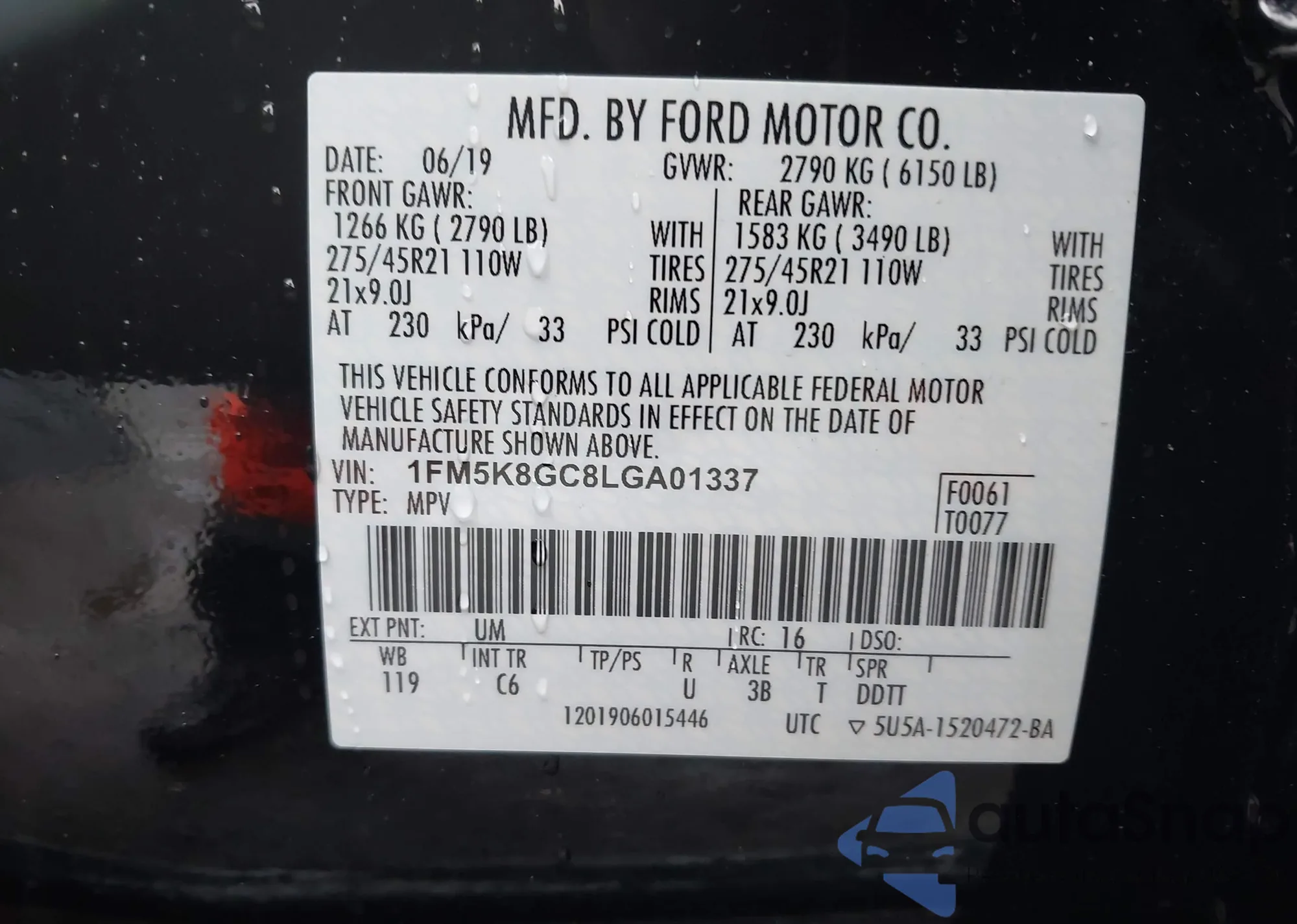 • VIN 1FM5K8GC8LGA01337